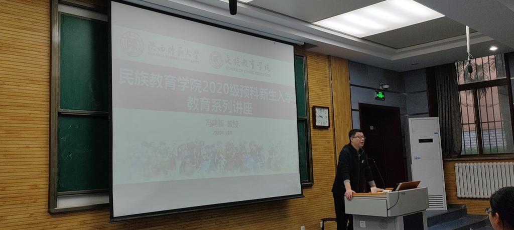 院长冯建新主讲,专职辅导员热依木主持,2020级144名预科新生参加讲座。院长冯建新对2020级预科新生提出建议和希望,并指出新生要尽快明确大目标,并以认真、进取的态度向大目标迈进,充实过好在校生活的每一天。