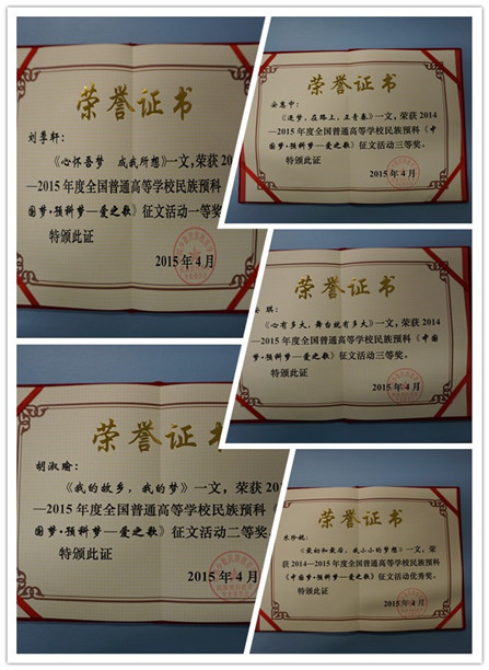 参加此次观摩会,并领取了我院学生在2015年“中国梦•预科梦”征文比赛中的获奖证书。