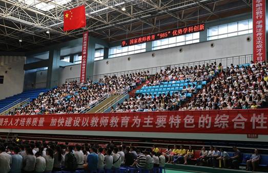 参加全校新生的开学典礼使我院新生们第一次深刻感受师大的文化底蕴和人文情怀,也使师大的精神在同学们的心中生根发芽,增强了同学们对师大的认同感和归属感,是一次非常成功的入学教育。