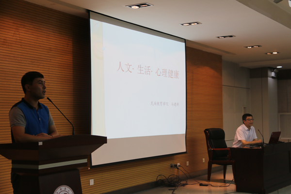 8月30日下午14:30,我院2016级预科新生入学教育系列讲座第一讲在崇鋈楼归仁堂开讲。本次讲座由我院院长冯建新教授主讲,讲座的题目为《人文·生活·心理健康》。我院2016级预科专职辅导员热依木、兼职辅导员蒙桂芳、王龙宇和370名全体预科新生参加了此次讲座。