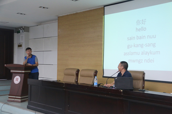 这次讲座受到了同学们的热烈欢迎,会场座无虚席。讲座开始,唐老师分别用汉语,英语,维吾尔语,壮语,蒙语,藏语六种语言中的“你好”向同学亲切打招呼,并与现场的同学们互动,各族同学们积极地向大家介绍自己的民族语言,让同学们感受到了各民族语言的独特魅力。接下来,针对少数民族预科学生英语学习存在的问题,唐老师以“成长—成人—成才—成功”为脉络,讲述了在预科阶段如何提高英语学习的效果,鼓励同学们从预科开始,重视英语学习,抓住一切学习英语的机会,努力提高自己的英语水平。