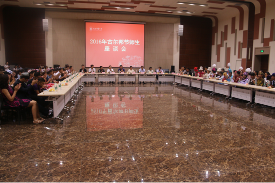 选派的少数民族学生代表参加了座谈会。会议由芮国星老师主持并致欢迎词,他向参会的嘉宾和老师同学们表示了衷心的感谢和节日的祝贺。