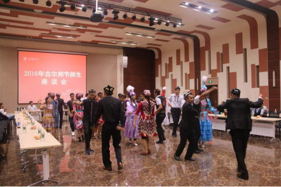 党总支书记郑生忠老师向参加会议的同学致以节日的祝贺,并希望佳节来临时思念亲人的同学能够将师大当作自己的家,将老师同学们当作自己的家人。为庆祝这个欢乐祥和的节日,郑书记引吭高歌了一曲《父亲的草原,母亲的河》,座谈会人员热情高涨。