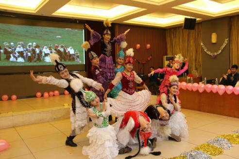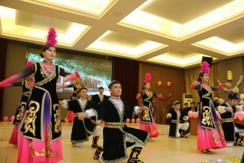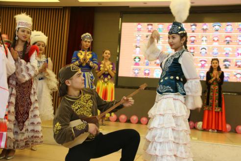 是一个相亲相爱的大家庭,各少数民族在大家庭中和睦相处,团结互爱。穿插其中的互动环节《猜猜看》拉近了师生距离,同学们积极参与,会场气氛热烈。最后,晚会在哈萨克族舞《歌舞青春》的欢快氛围中接近尾声。晚会临近结束,taptap