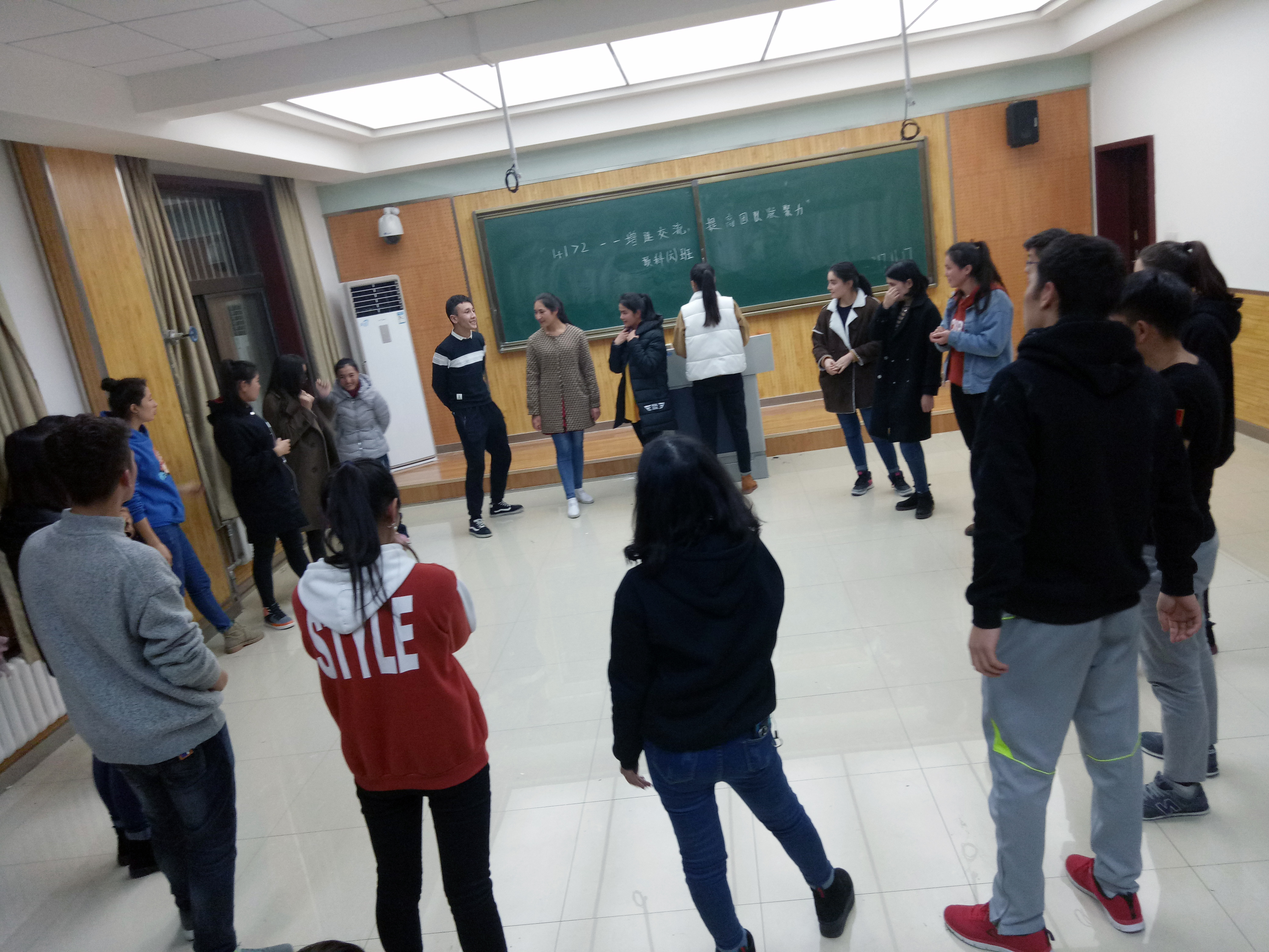 2017级两年制预科六班,在教学5楼5305教室开展了以“1+1>2—增进交流,提高班级凝聚力”为主题的团体心理辅导活动。活动由六班心理委员指导,各班委组织实施,全班同学共同参与。