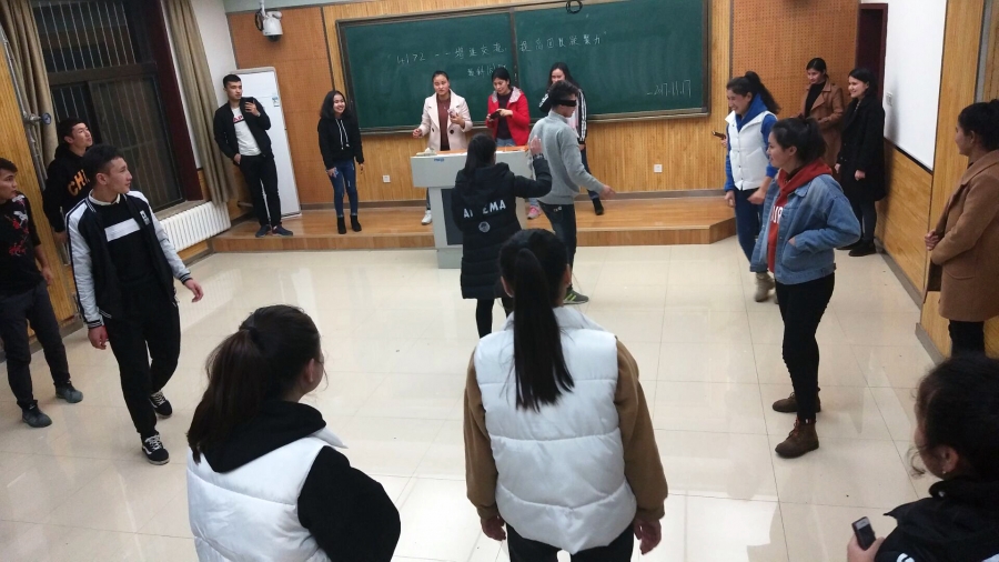 活动前,心理委员就举行团体心理辅导活动的意义、要求和注意事项做了简单的讲解。之后心理委员带领全体同学开展“破冰之旅—猜猜我是谁、放松”、“助人受助——盲行”、“成长心连心”等互动游戏。每一个游戏都在愉悦的氛围下圆满结束,活动过程充满欢声笑语,同学们都积极参与,建言献策,发表自己的看法。活动最后,同学们一起欢快地跳起了各自民族舞蹈,表达了收获的好心情。