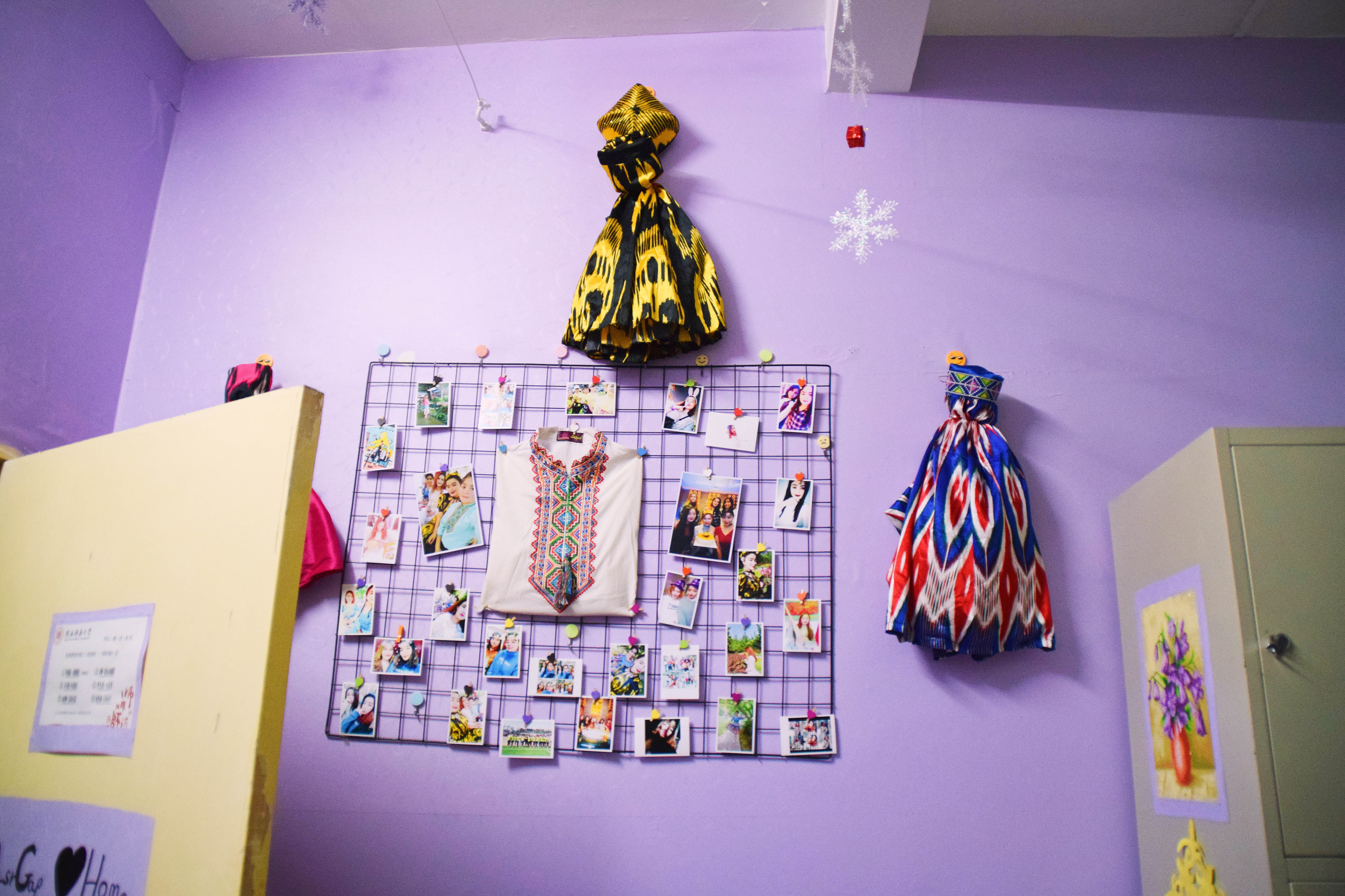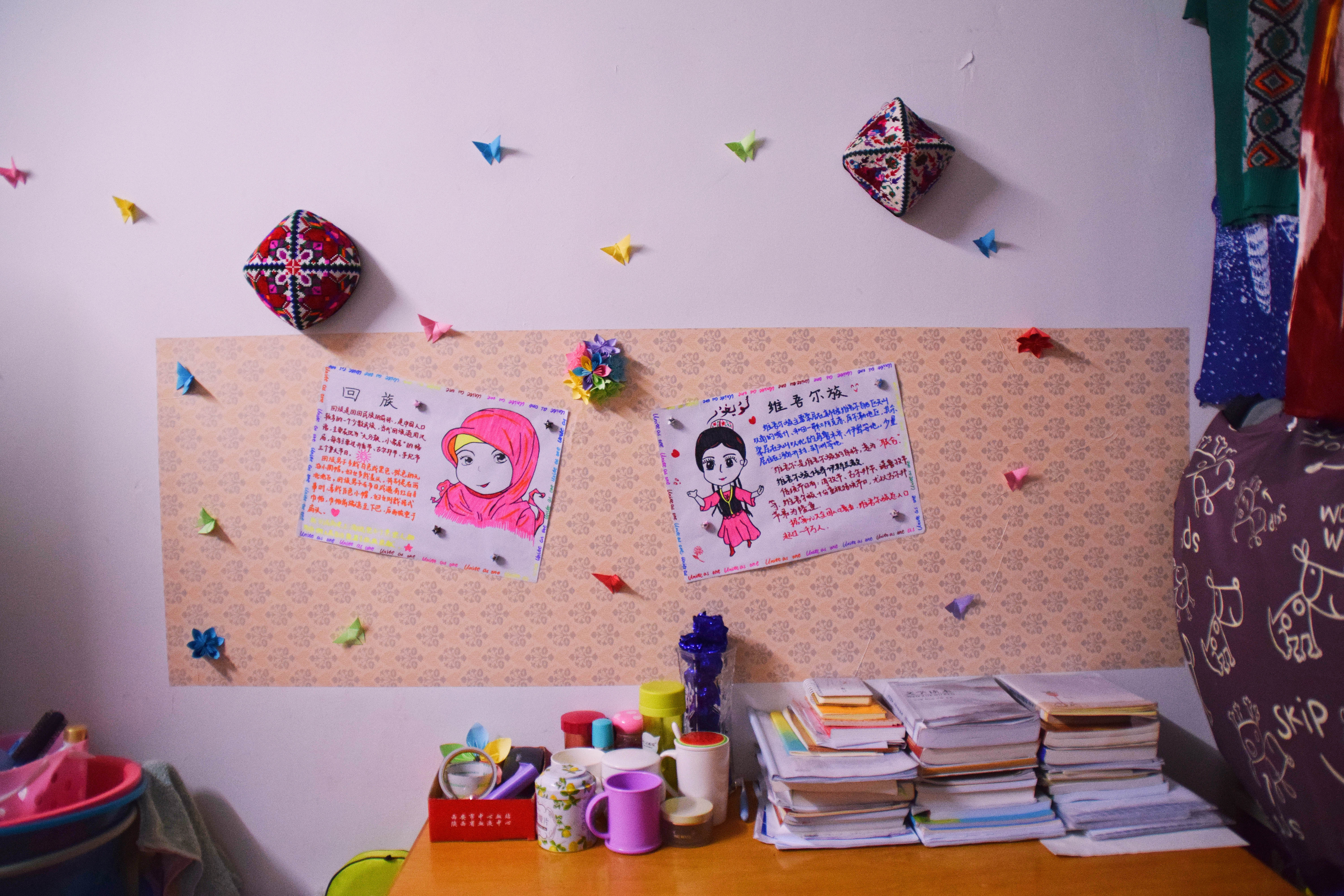 12月25日下午3点,宿舍文化节的评比活动正式开始。老师们及生活部干部先后走访参观了男生4-5号学生宿舍楼和2-3号女生宿舍楼。一进楼道,便能看见走廊上的相框里有学生们青春洋溢的笑脸,一望到小粉楼2栋三楼的走廊尽头,色彩艳丽的民族卡通画象扑入眼帘,那些别出心裁的宿舍主题风格和装扮创意更是令人眼前一亮,这些无一不显示出宿舍文化节浓厚的气氛。还有的宿舍墙上挂着的艾德莱斯绸,铺着民族风花纹桌布的桌子上摆放的馕,墙面上挂着的马头琴,都将民族文化融入生活之中。一些宿舍里挂着同学们手绘的人像画,精美的手工叠纸,得到了各位参审评委老师们的一致称赞。在参观过程中,老师们不仅对同学们参与宿舍文化节的热情表示肯定,同时对大家在宿舍评比中发现的问题提出了指导性的建议。
