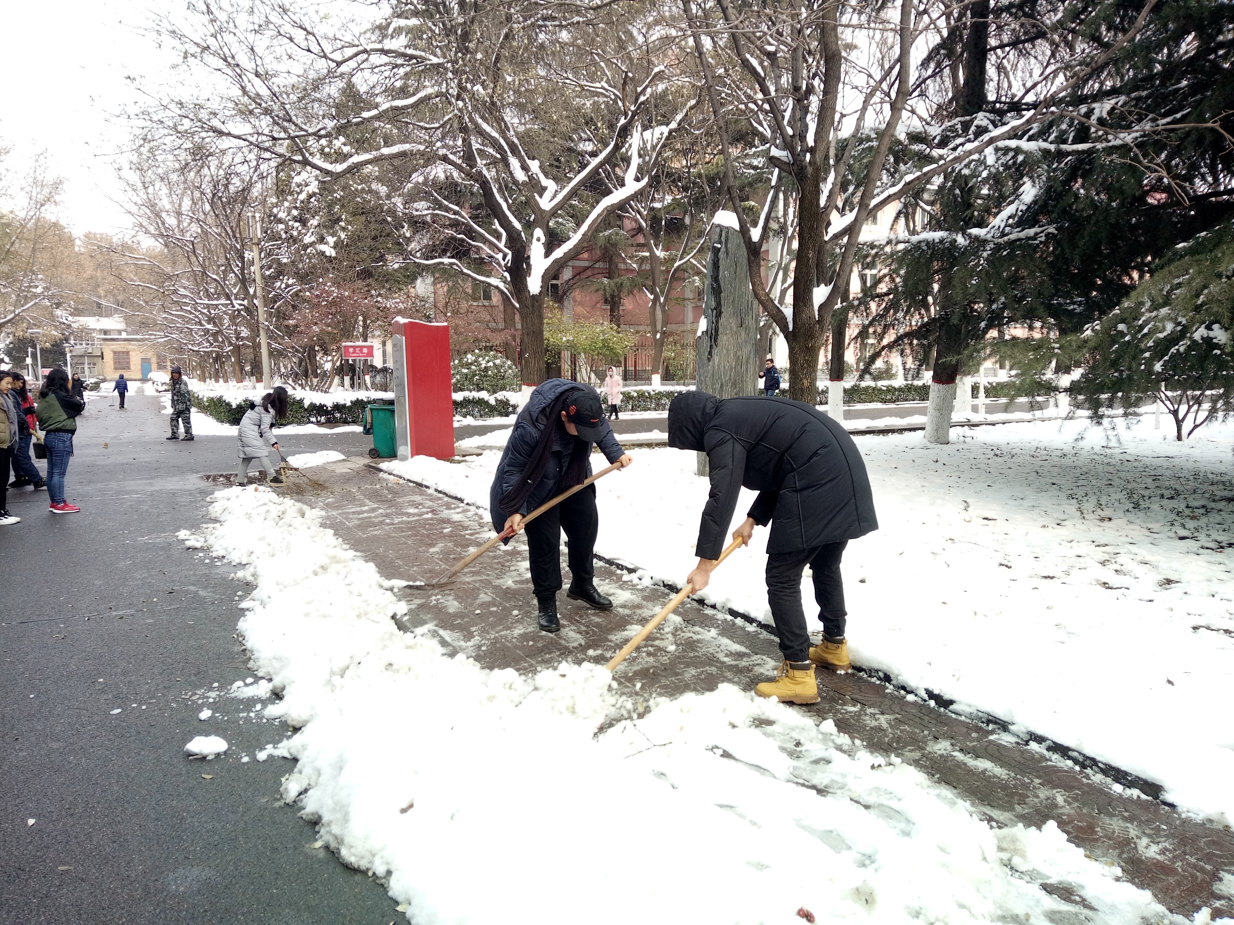 为突显学生骨干先锋模范作用,共建美丽、平安师大,保障师生安全出行,1月7日下午两点,我院积极响应校团委号召,在图书馆东侧学苑东路到六附楼前集体清扫积雪。我院辅导员、学生会主要学生干部、入党积极分子以及志愿者参加了本次活动。