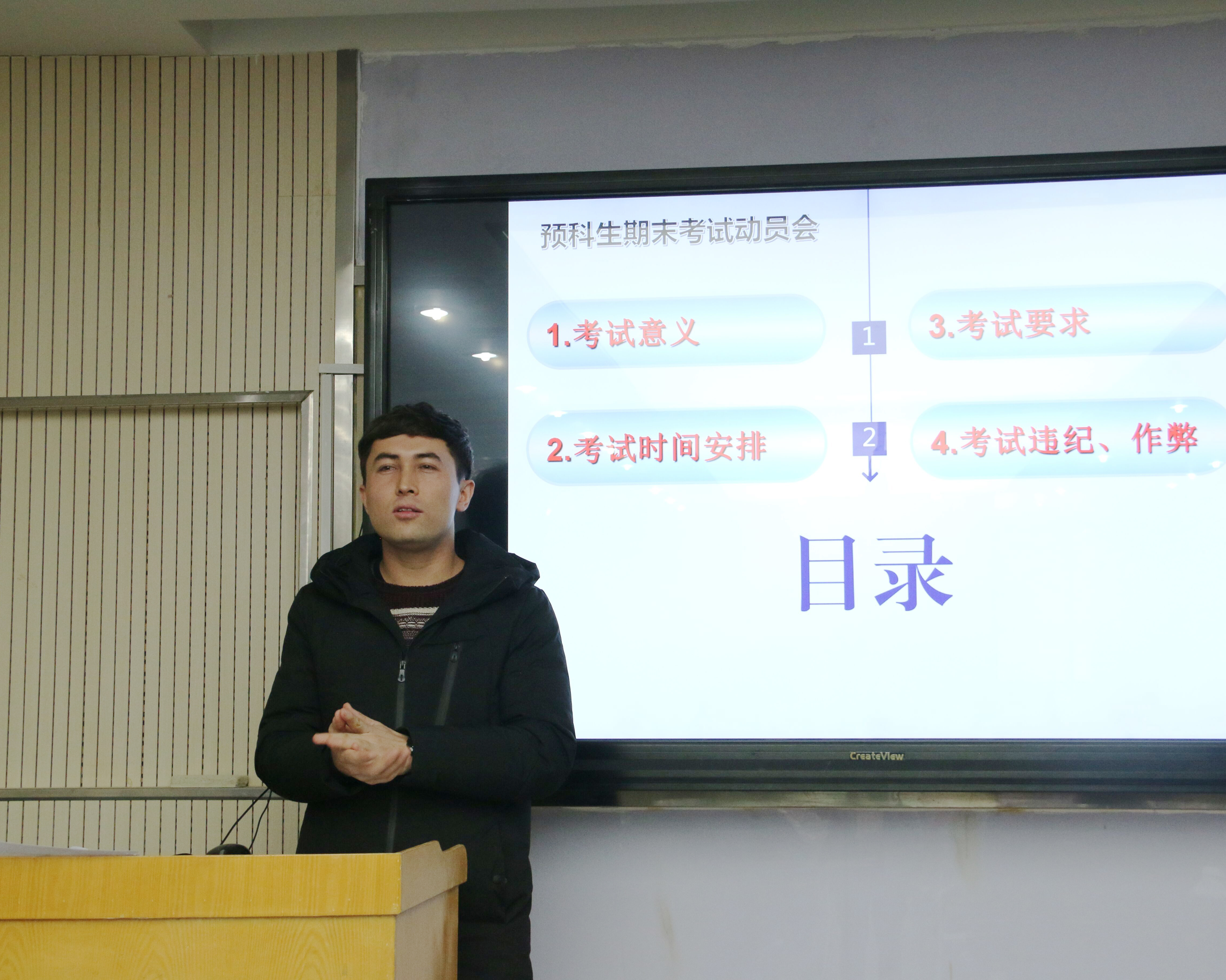 我院专职辅导员热依木老师,从考试意义、考试时间安排、考试要求、考试违纪这四个方面进行了详细的说明,特别强调期末考试在个人层面和taptap