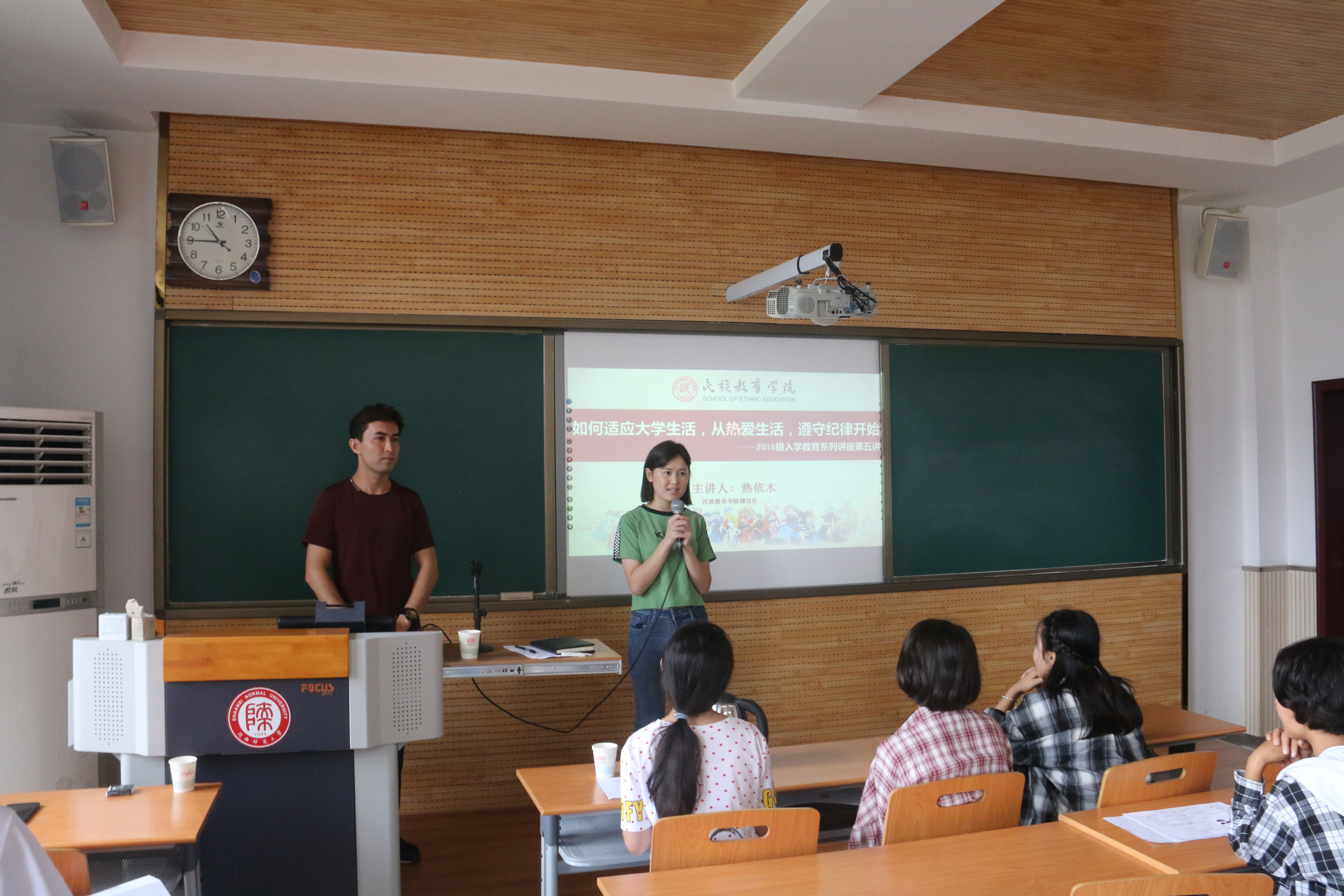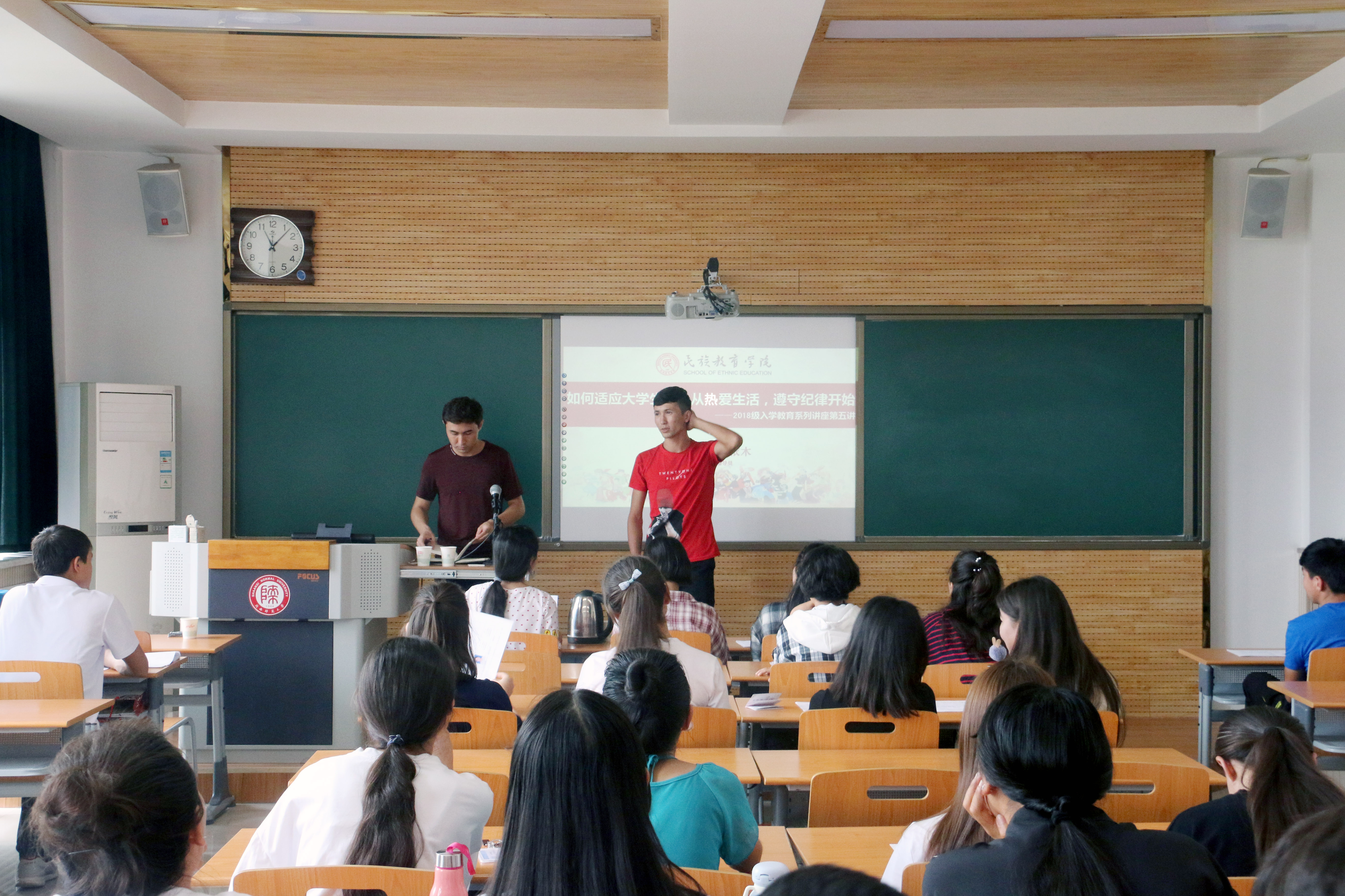 我院预科生专职辅导员热依木老师,以“如何适应大学生活,从热爱生活、遵守纪律开始”为题,结合我院历年发生的典型学生教育管理案例,使同学们了解大学教学特点,尽快适应大学学习生活,向同学们详细讲解了学校和taptap