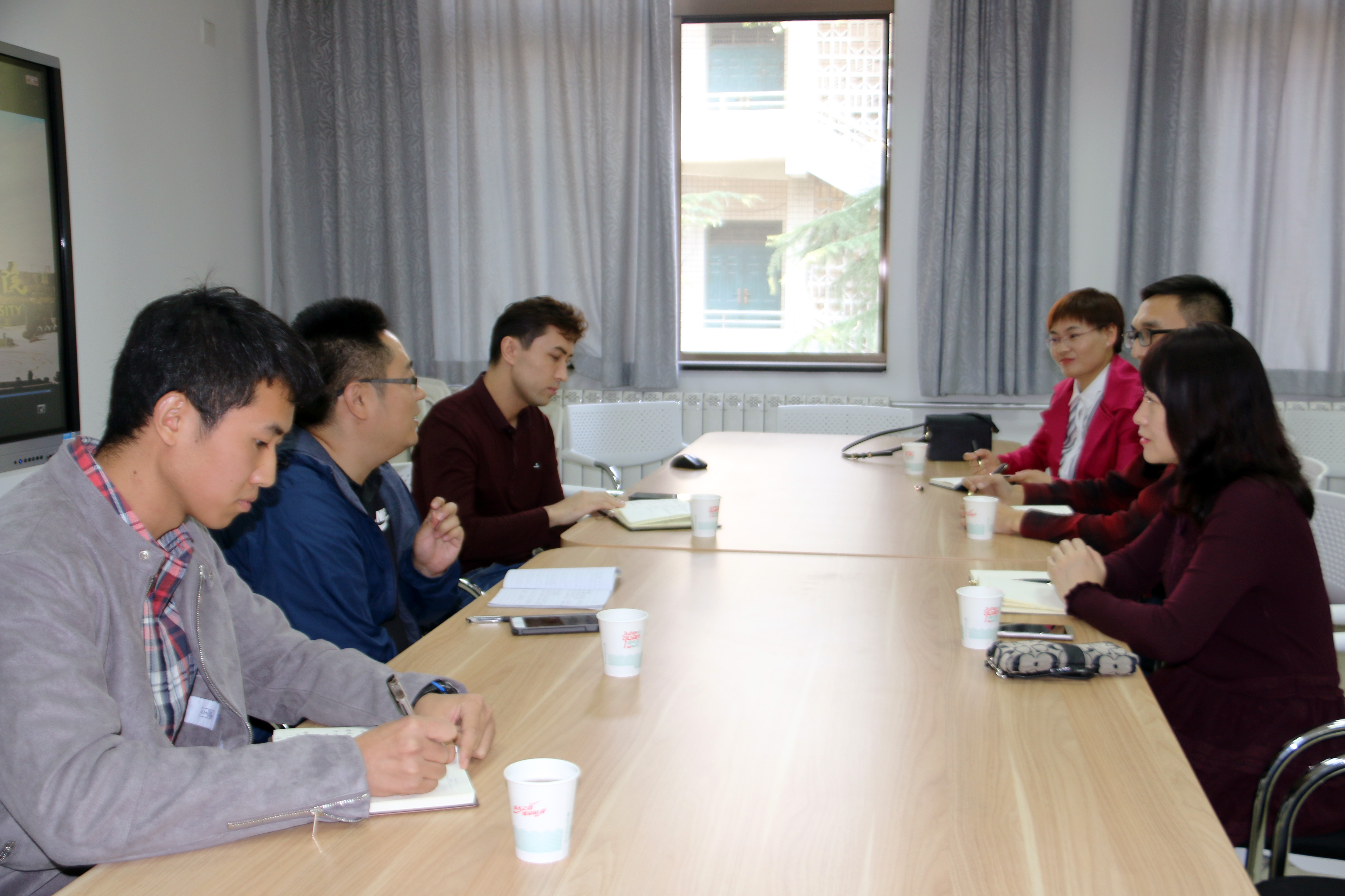 副院长李锐、西安外国语大学新疆内派服务管理教师轩慧芳、少数民族专职辅导员哈斯铁尔·吐尔德汗一行3人来我院调研交流学生工作,我院党总支副书记行政副院长窦文阳、专职辅导员热依木·努尔麦麦提、兼职辅导员王国昌参加交流座谈,座谈会在taptap