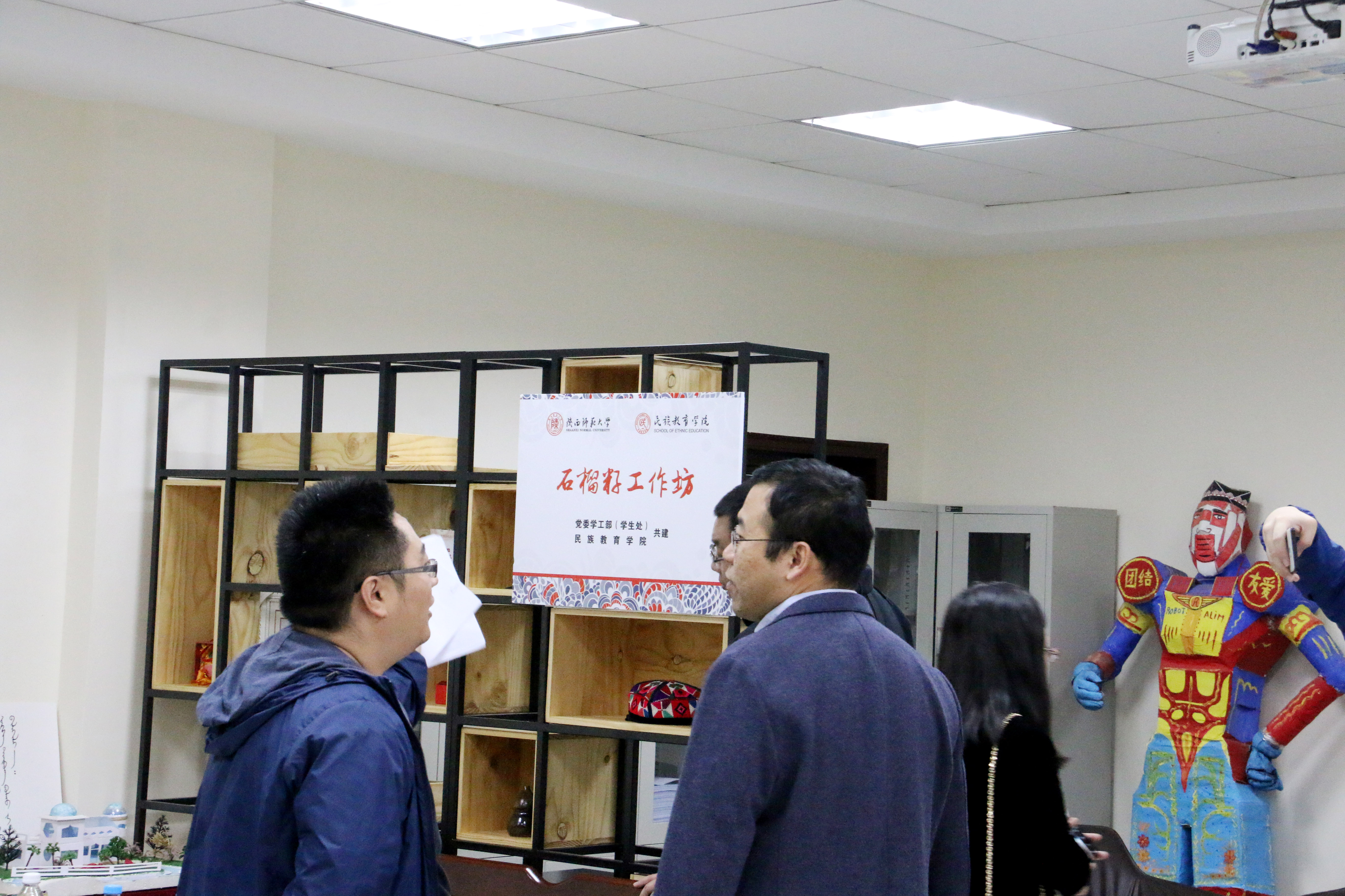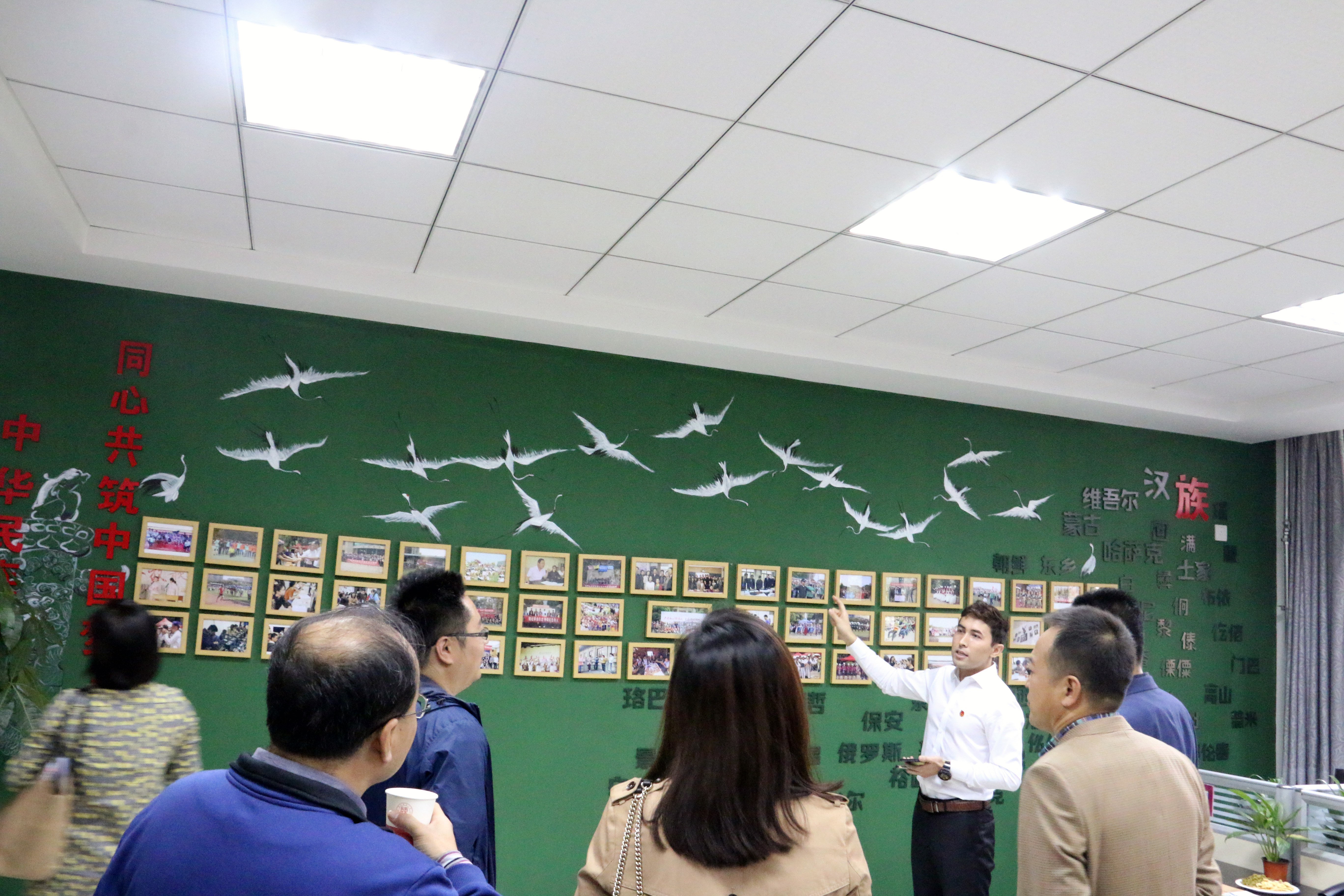 “悦心坊”二级心理辅导站、石榴籽工作坊、民族教育成果陈列室、少数民族大学生马列理论学习中心、党团学生活动室等活动场地,并向大家介绍了以“同心共筑中国梦,中华民族一家亲”为主题的手绘文化墙,并对特色内容展示做了寓意介绍,同时也对文件柜中150余学生工作材料和学生管理制度档案盒做了简单介绍,展示了我院学生思想引领、组织建设、制度建设及特色服务活动等方面的育人内容。taptap