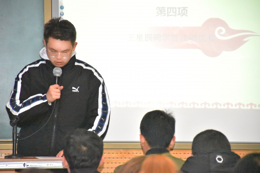 接着奥宁同学代表我院学生会向大家介绍了本届宿舍文化月的活动及注意事项,他说到,本次活动主要包括制作宿舍工艺品,宿舍文化建设,寝室配音秀等项目,以此帮助同学们养成良好习惯,促进宿舍关系,创建良好环境。