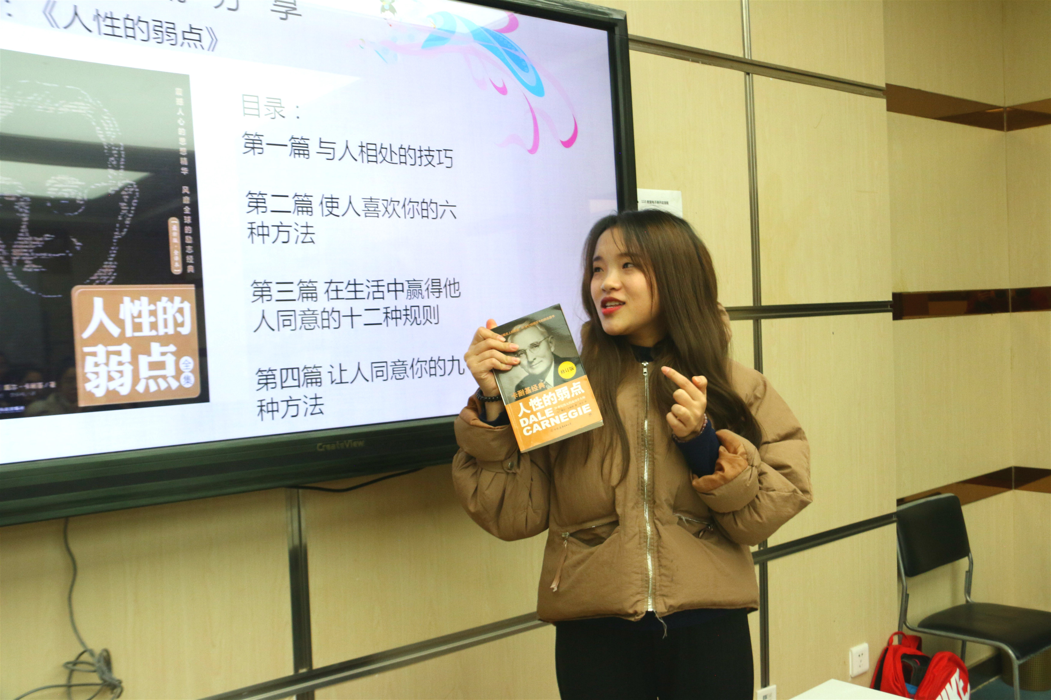 在活动的开始阶段我们进行了简单的破冰游戏(你抓我逃),到场的每位同学都抱着极大的热情参加了这项游戏。大家通过这项小小的游戏活动加深了对彼此的了解,同时也缓解了活动开始时的紧张气氛。随后,由学习部主任阿娜尔古丽介绍了少数民族大学生马列理论学习中心的基本情况以及宣读了管理规章制度。 接下来是该进行活动最重要的一部分内容了,是该各位同学向大家推荐读书科目以及读书心得的时间了。首先是学习部成员陈靖向大家推荐了书目《人性的弱点》。她介绍了本书作者,主要内容以及分享了经典语录,并同大家分享了自己的读书心得,还热心地帮助大家回答与这本书相关的问题,使得同学们对这本书有了一定的了解,同时也萌发了阅读该书的兴趣。接下来便是马克思主义taptap