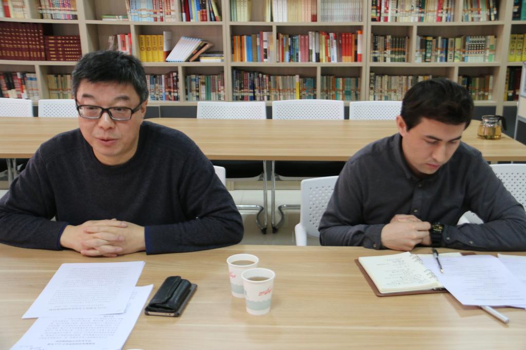 党总支秘书热依木·努尔麦麦提做会议记录。