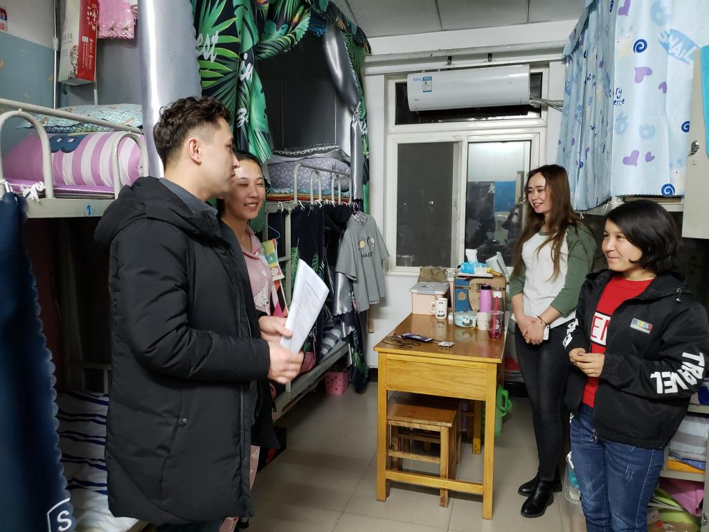 新学期少数民族学生教育管理服务工作,2月25日晚,我院专兼职辅导员深入预科学生宿舍了解学生到校情况和返校思想动态,以“及时发现、及时整改、及时规范”的工作原则,尽早的了解并帮助解决学生在生活和学习中所遇到的困难和问题。