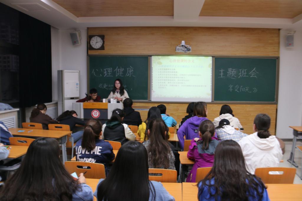 班会伊始,心理委员古丽努尔向全班同学介绍了此次的主题班会的背景、目的及意义。她围绕“心理健康知识讲解”、“关注孤独感”、“游戏环节”等三个方面内容展开讲解,并鼓励同学们要勇敢面对生活中的问题,正视自己的心理健康状况。