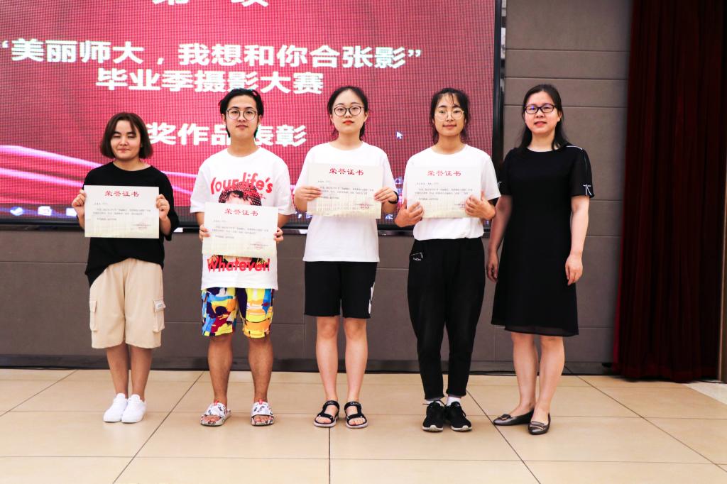 教师代表为获得“美丽师大我想和你合张影”摄影比赛优秀作品、“读懂中国”获奖征文、“家乡的新变化”获奖征文、2018级优秀研究生、优秀学生干部、外语优秀个人、文艺活动先进个人及优秀运动员等多位获奖同学颁发了荣誉证书并合影留念。