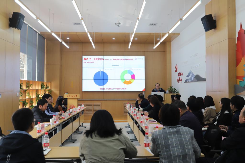 在专题调研环节,西安交通大学学工部(处)部长、大学生党委书记周远,学工部副部长、大学生党委副书记李新安,大学生党委组织员牛宏杰,学工部(处)经济资助主管邱辰、少数民族学生工作管理主管孙丹、学生事务主管惠彦渊,新疆内派教师韩悦与实践团成员进行座谈交流,分别介绍了西安交通大学大数据在学生教育管理服务工作中的特色经验与做法、新时代学生思想政治工作质量提升工程实施情况及“不忘初心、牢记使命”主题教育创新做法及典型案例。与会人员就新时代学生工作的任务与挑战进行充分交流,我校实践团成员为西安交通大学构建起“有智慧、有温度、有内涵”的精准思政育人体系点赞,并希望更多地借鉴西安交通大学好的经验和做法,建立长期互助帮扶的学工伙伴关系。