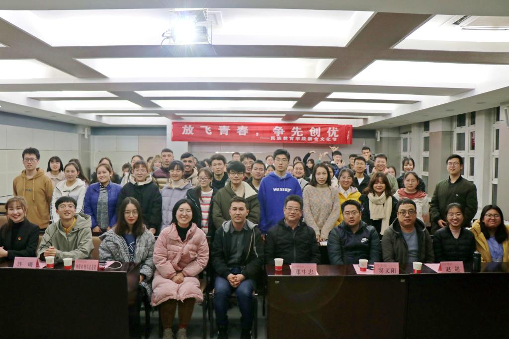 为弘扬各民族优秀传统文化,加强民族预科宿舍的规范化管理,努力营造健康向上、和谐共融的宿舍文化氛围,促进学生宿舍关系的和谐发展。我院于11月初组织开展宿舍文化月,在为期一个月的宿舍文化月中,民教学子共同展现民族风情,共造和谐宿舍。12月2日19时30分,我院2019年宿舍文化月总结大会暨颁奖典礼在崇鋈楼二层思齐堂顺利召开。我院党总支书记郑生忠,党总支副书记、副院长窦文阳,团总支书记赵超、专兼职辅导员热依木、许珊、冯祎洁以及70余名学生参加本次总结大会。本次大会由陈鹏帆和李香知同学主持,总结大会主要包括学生干部代表发言、学生宿舍代表发言,优秀宿舍、手工艺品等各项内容的展示以及宣布各类奖项评选结果和颁发奖项等环节。
