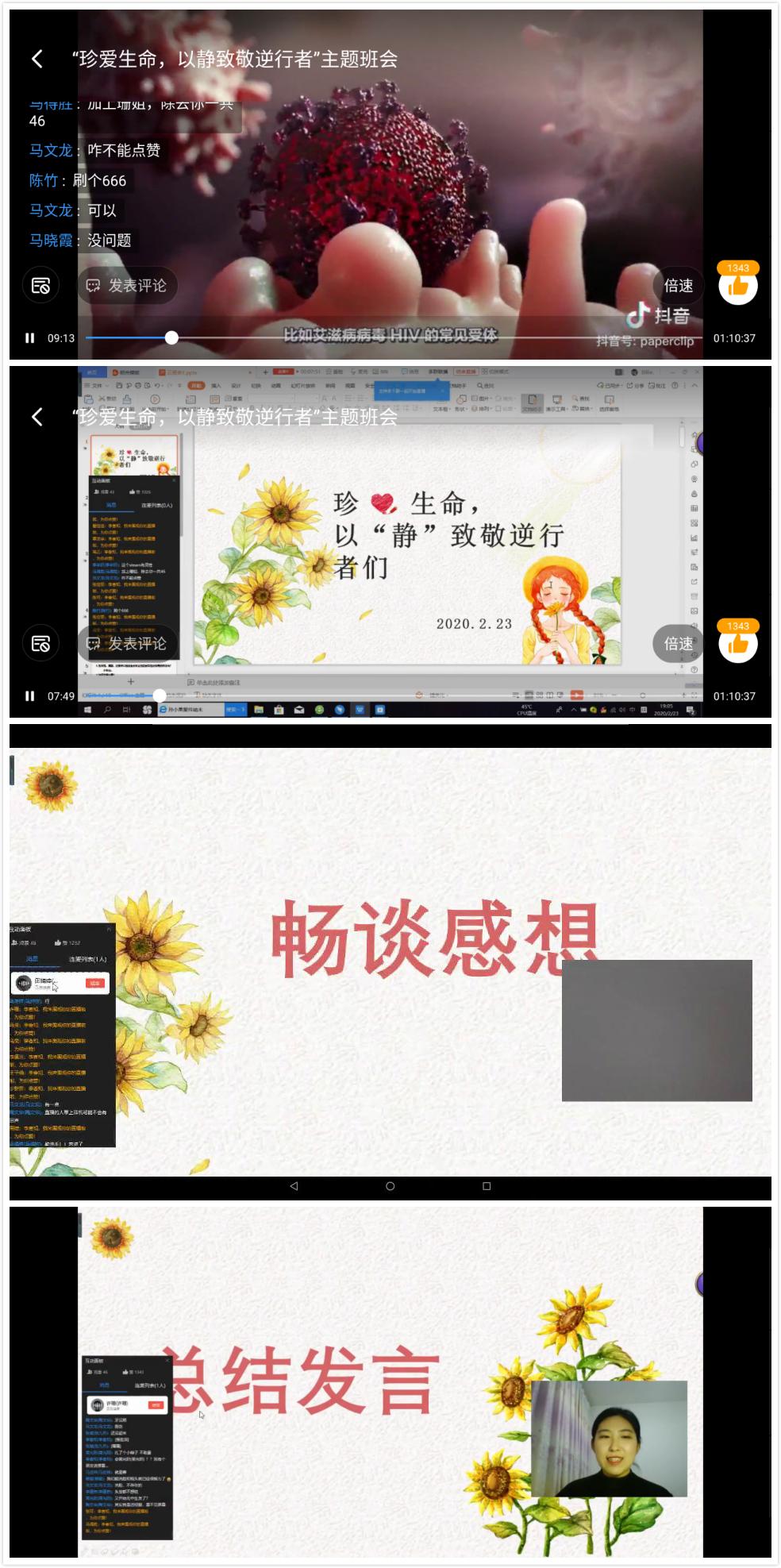 以“坚定信心同舟共济防控疫情”为主题开展云班会,就抗击疫情、科学防控、责任担当、基础强化学习等方面开展学习讨论,用网络共同科普疫情知识,分享疫情故事,传播正能量。