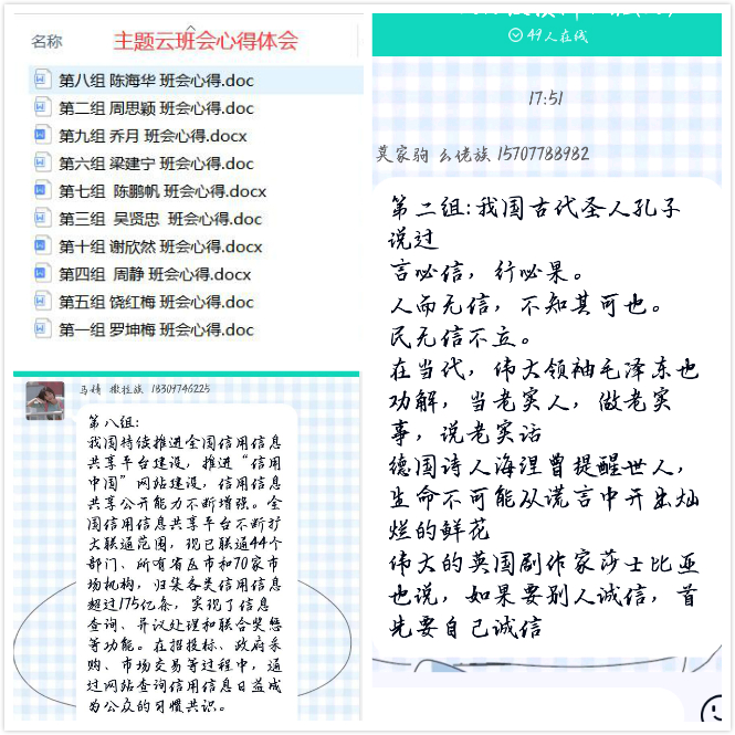 各预科班根据2020年学生工作要点,积极围绕本届活动月主题召开线上班会,将诚信教育活动与校风传承、学风建设、文明校园建设相结合,让“秉信立行”观念融入班级建设、课堂学习、学术研究和宿舍生活,影响带动更多学生以诚修德。