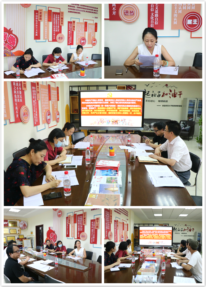 活动伊始,首先,各支部参会党员在支部书记的带领下进行入党宣誓,重温入党誓词,进一步增强党员责任感、光荣感和使命感,牢记党员身份,履行党员义务,践行入党誓词。接着,各支部书记传达了学校相关文件精神,明确了此次组织生活会的主题及意义。然后,各支部党员集体学习了“习近平在统筹推进新冠肺炎疫情防控和经济社会发展工作部署会议上的讲话”精神和中共中央印发《关于加强党的领导、为打赢疫情防控阻击战提供坚强政治保证的通知》精神以及2020年上半年《求是》发表习近平总书记文章等学习材料,学习的文章内容包含了习近平总书记 2020年1月至5月期间讲话、谈话、信函、慰问电、与外国领导人和国际组织负责人通电话中有关开展抗疫国际合作等内容。会上,各支部参会党员观看了中联部新闻办推出的系列短视频《中国抗疫人物故事》,短视频以抗疫一线普通人物的真实故事,再现中国人民与病毒进行英勇斗争的壮阔画面,传递人类终将战胜疫情的坚定信心。最后各支部党员围绕“迎党的生日、讲战疫故事、悟初心使命”主题,逐个讲述发生在身边的“战疫故事”,深刻阐述自己的切身体会。党员同志们的评论和感悟都表示:“抗疫是一场没有硝烟的战争。在疫情防控阻击战中,广大党员以良好的作风冲锋在最前面,战斗在第一线;一个个基层党组织就是一座座坚强的战斗堡垒,凝聚着人心、守护着家园。