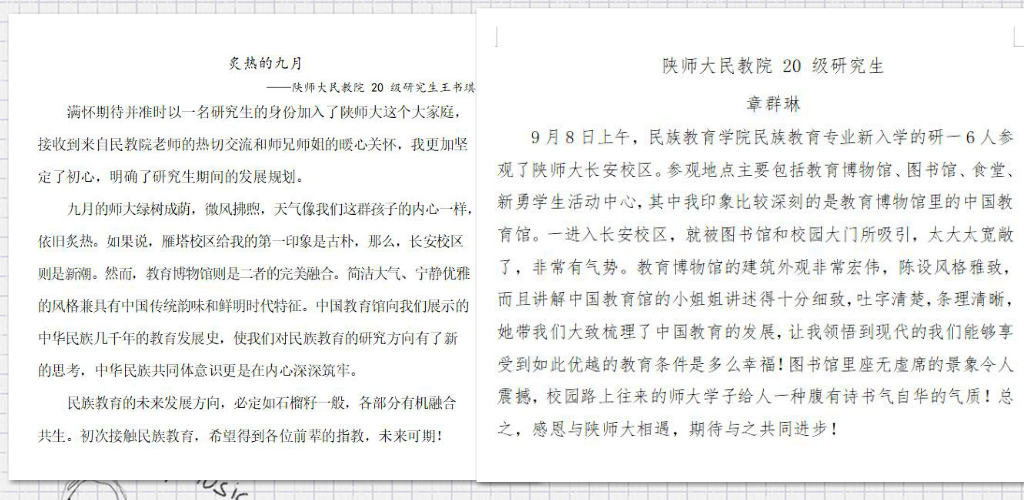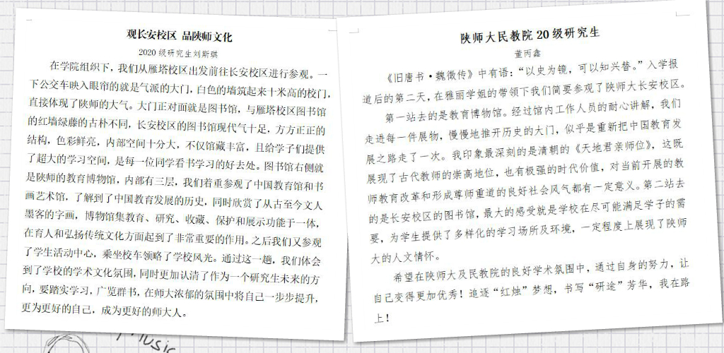 组织2020级研究生对新校区校园和教育博物馆进行了参观学习,感受师大深厚的历史底蕴和文化传承,参观完后学生撰写心得体会,表达真情实感。