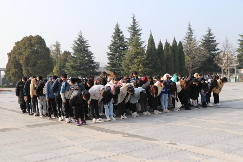 上午九点三十分,师生到达扶眉战役纪念馆。纪念碑前,缅怀烈士活动在庄严的国歌声中正式开始,师生在纪念碑前默哀三分钟并行三鞠躬礼,伴随着庄严的音乐,学生代表上前敬献花篮,致先烈最崇高的敬意。在扶眉纪念馆,讲解员通过一张张历史照片、一件件革命文物,生动地再现了革命先烈浴血奋战、视死如归的场景,使师生全方位了解中国解放战争中西北战场上最大的一次战役艰苦的历程以及浴血战场的英勇事迹,在场的师生都切身感受到革命先烈们在艰苦卓绝的革命斗争中不畏艰险、勇于牺牲的革命精神。同学们在感叹战役的规模之大、意义之深的同时,也被烈士大无畏的革命精神和艰苦奋斗的钢铁意志所感动并纷纷表示要向烈士学习,并将这种精神与意志发扬光大。