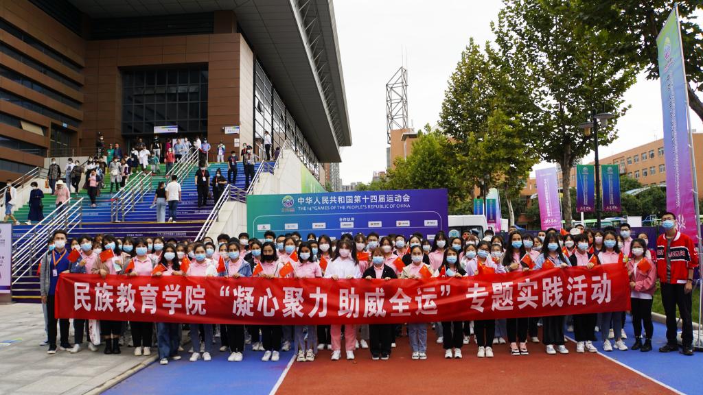 在活动前期严格按照十四运会观赛要求,组织预科生、研究生集体完成了核酸检测、票务绑定、健康打卡等事项,要求学生遵守十四运会现场管理制度、依规观赛;结合十四运会主题和活动特色,制作了加油助威宣传板和活动主题横幅,向同学们发放小红旗,全力营造为陕西队加油助威的热烈氛围。