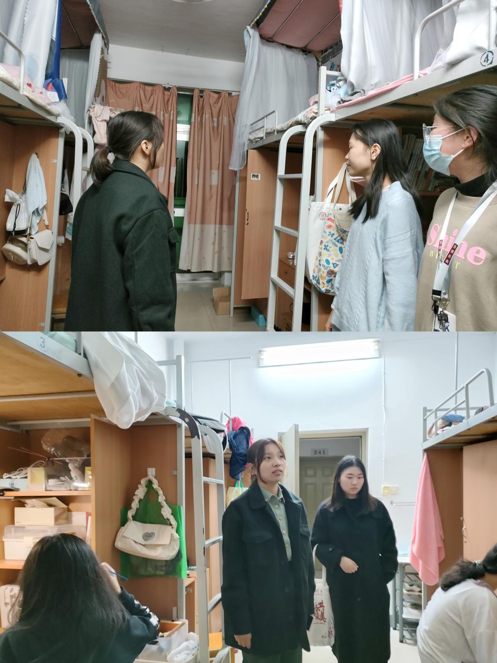 团总支书记热依木·努尔麦麦提与专兼职辅导员王霞、谢成玉、夏逸静深入走访了学生寝室,对宿舍安全卫生进行全面检查。