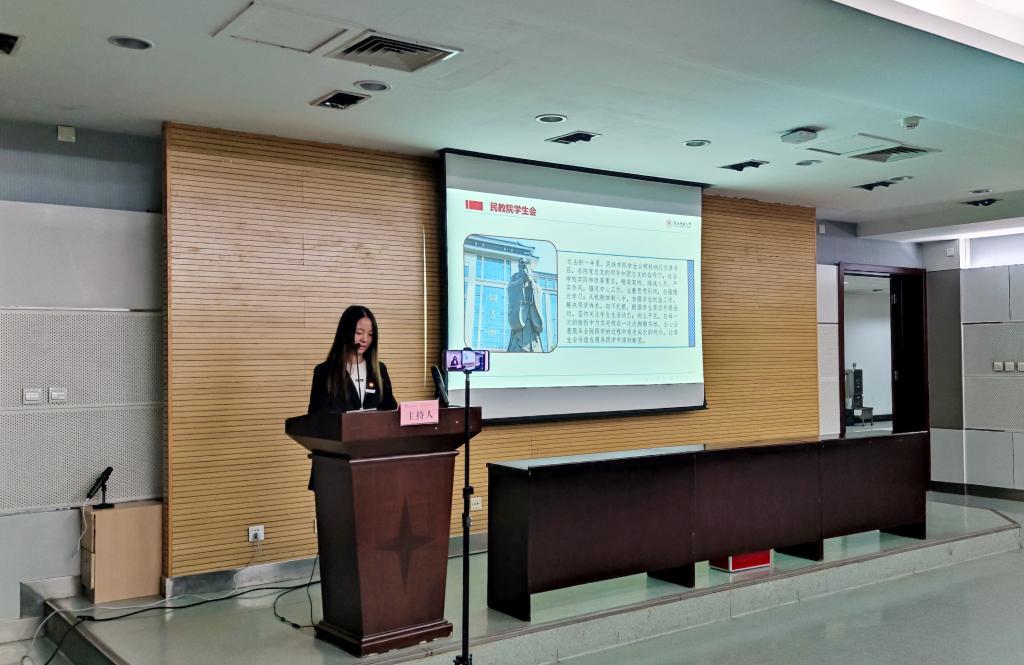 团总支书记热依木·努尔麦麦提致大会开幕词;上一届学生会执行主席沈翰蒙作《2020-2021学年度学生会工作报告》。