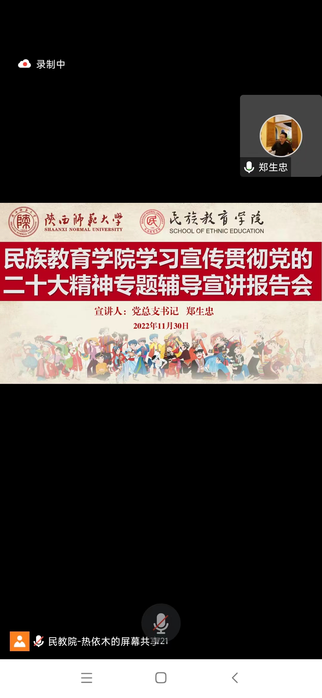 宣讲伊始,郑生忠首先以“党的二十大召开的重大意义”为切入点,结合伟大建党精神深刻解读了党的二十大的主题和主要成果。通过介绍新时代党和国家事业所取得的历史性成就、发生的历史性变革、二十大报告的一些基本情况,深刻阐述了党的二十大的历史地位与重大意义。他带领全体师生回顾了中国共产党带领全国各族人民在过去5年的工作中和新时代10年的伟大变革取得的历史性胜利。其次,讲解以深入浅出的方式从“党的二十大的主题及重大成果”“过去五年的工作和新时代十年的伟大变革”“开辟马克思主义中国化时代化新境界”“中国式现代化”“全面建设社会主义现代化国家的目标任务”“坚持党的全面领导和全面从严治党”“如何应对风险挑战”七个方面进行了宣讲,为全院师生学习贯彻党的二十大精神提供了理论指导。最后,郑生忠鼓舞全体师生深刻认识做好党的二十大精神学习宣传工作的重大意义,在学习过程中一定要秉承学懂弄通、学深悟透、精准把握、科学运用的精神,从党的二十大报告原文和重要学习文献出发进行全面、系统、深入地学习,迅速掀起学习宣传贯彻党的二十大精神的热潮。