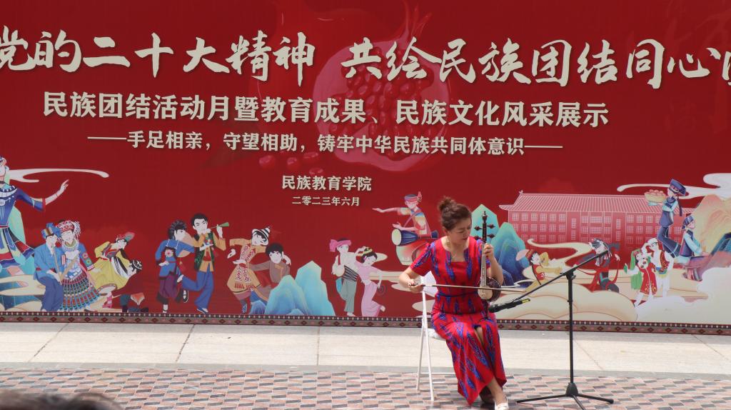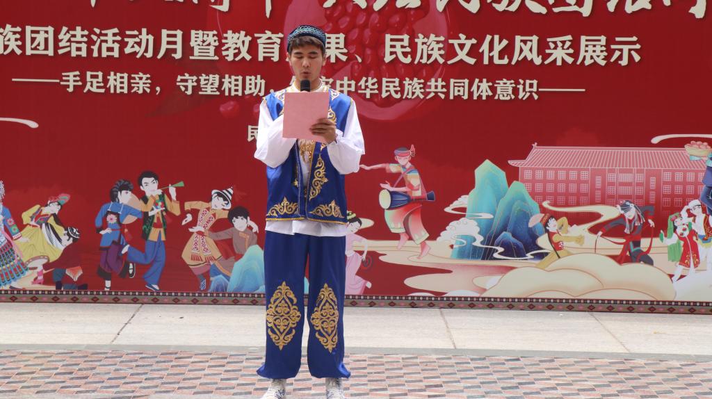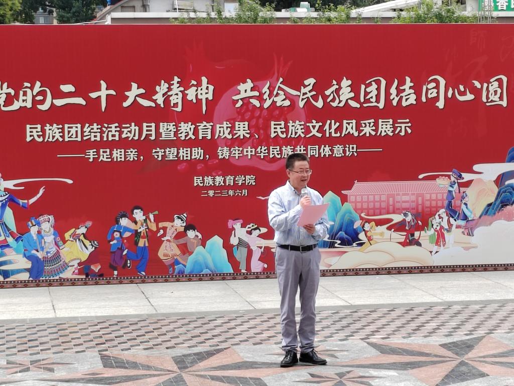 深入推进民族团结进步创建工作的一项重要举措。民族团结活动月的开展为广大学生展示自我、表达自我提供了舞台;也为促进全校各民族师生深入了解、深入交往搭建了桥梁。他寄语同学们,要充分认识本次活动的重要意义,在展示中促交流、在交流中促融通、在融通中促团结,深刻理解党的二十大精神重要内涵,铸牢中华民族共同体意识,真正做到共绘民族团结同心圆!