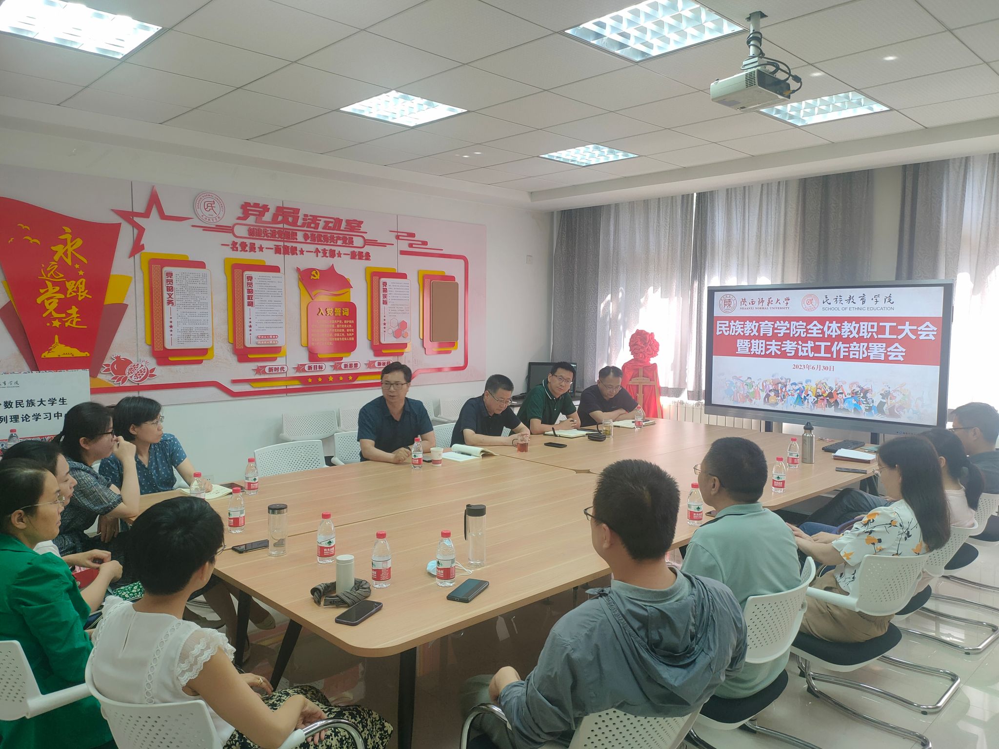 ,以及民族教育工作的深远影响,他要求全体考务人员、监考人员和阅卷教师应提升政治站位,规范考试操作流程,对考场意外情况处置、监考教师纪律、作弊行为处置等程序进行了强调,同时再次重申了试卷装订、阅卷、平时成绩计分、登分等各环节的工作重要性,并特别提醒考生不得携带书籍、手机等与考试无关的物品进入考场。他还要求辅导员充分进行学生考前的动员工作与宣传,要将考试安排、考场规则、以及考试违纪、作弊处理的相关规定明确传达给每一位同学,以保障考试的公平性和教育质量。