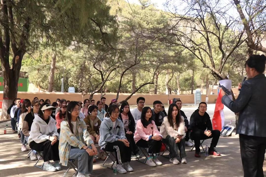 党总支书记郑生忠作了现场教学,为师生们讲述了扶眉战役的历史背景和重大意义,结合当前世界动荡局势,鼓励全体师生继承和发扬革命精神,坚持党的领导,坚持社会主义道路,不断铸牢中华民族共同体意识,像爱护我们的眼睛一样爱护民族团结,为中华民族伟大复兴作出青年学子的贡献。