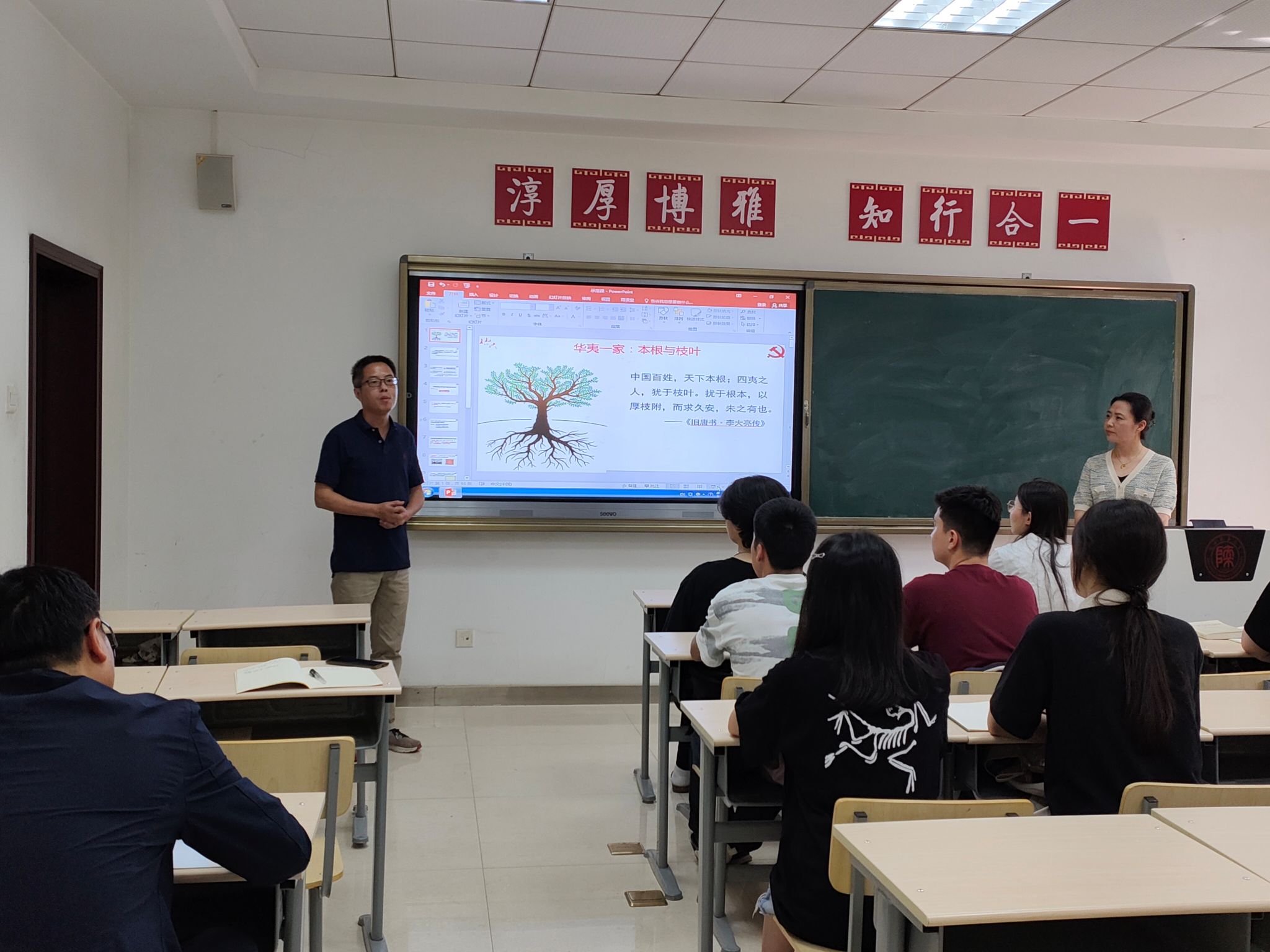 此次教学示范课由萨仁娜老师和乔露老师执教。萨仁娜老师的授课内容为《华夷一家:本根与枝叶》,萨老师以《旧唐书》中的句典导入课程,引出主题“本根与枝叶”,强调习近平总书记在中央民族工作会议中提出的关于民族政策的“四对关系”,重点分析讲解其中“共同性和差异性”关系。在授课过程中,萨老师表述清晰,引用史例丰富,注重和学生的交流互动,取得了良好的课堂效果。随后,乔露老师围绕《函数的连续性》进行授课,乔老师以经典故事“断桥残雪,邂逅浪漫”引出数学“连续”的概念,引导学生探索发现生活中的数学现象,从而激发学生学习数学的兴趣,通过例题的讲解,详细展示如何判断函数的连续性。乔老师授课逻辑性强,注重课堂讲授与启发思考相结合,获得在场师生的好评。