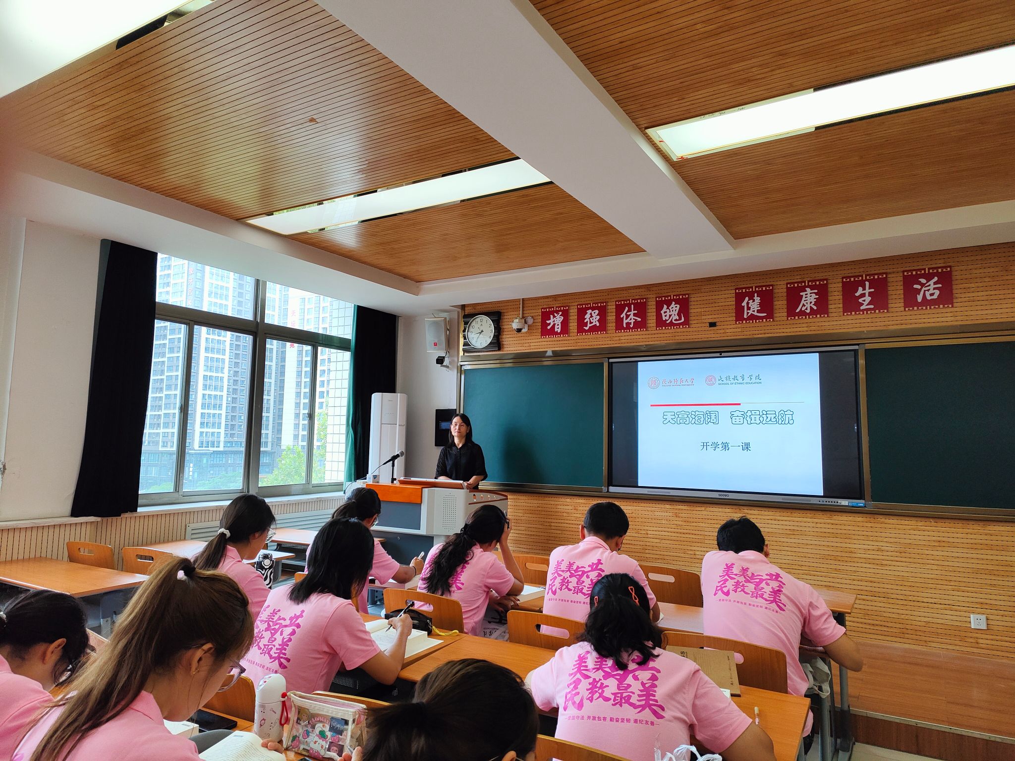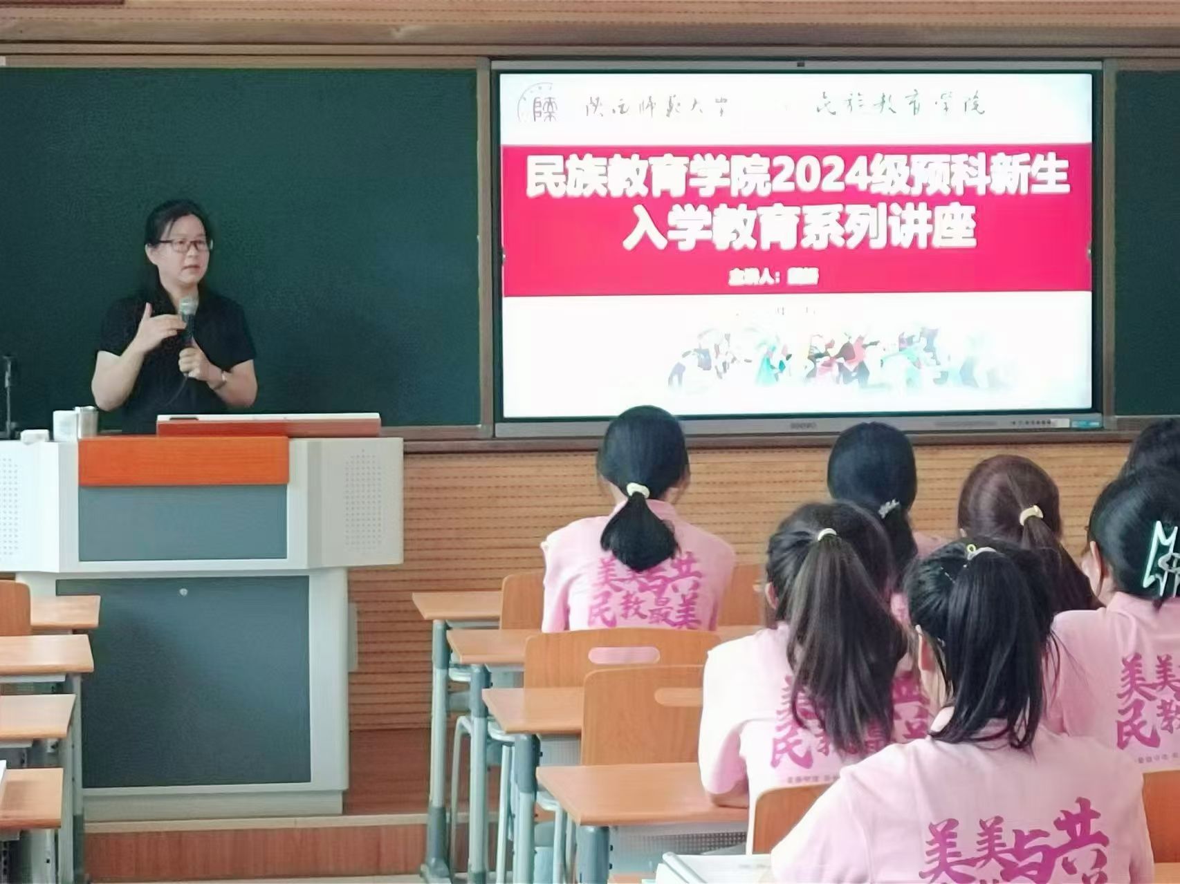 戴妍教授的以“新起点•心启航”为主题的心理健康教育讲座和卢静副教授的以“天高海阔,奋楫远航——关于大学阶段学习规划的交流与分享”为主题的新生入学讲座,2024级全体预科新生参加讲座。