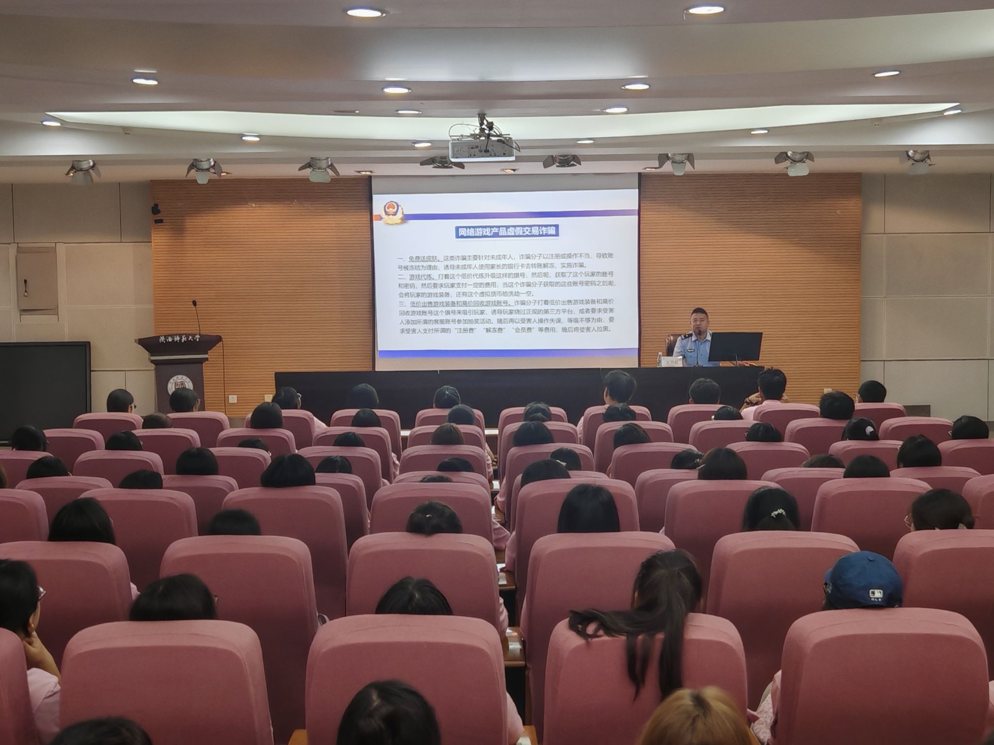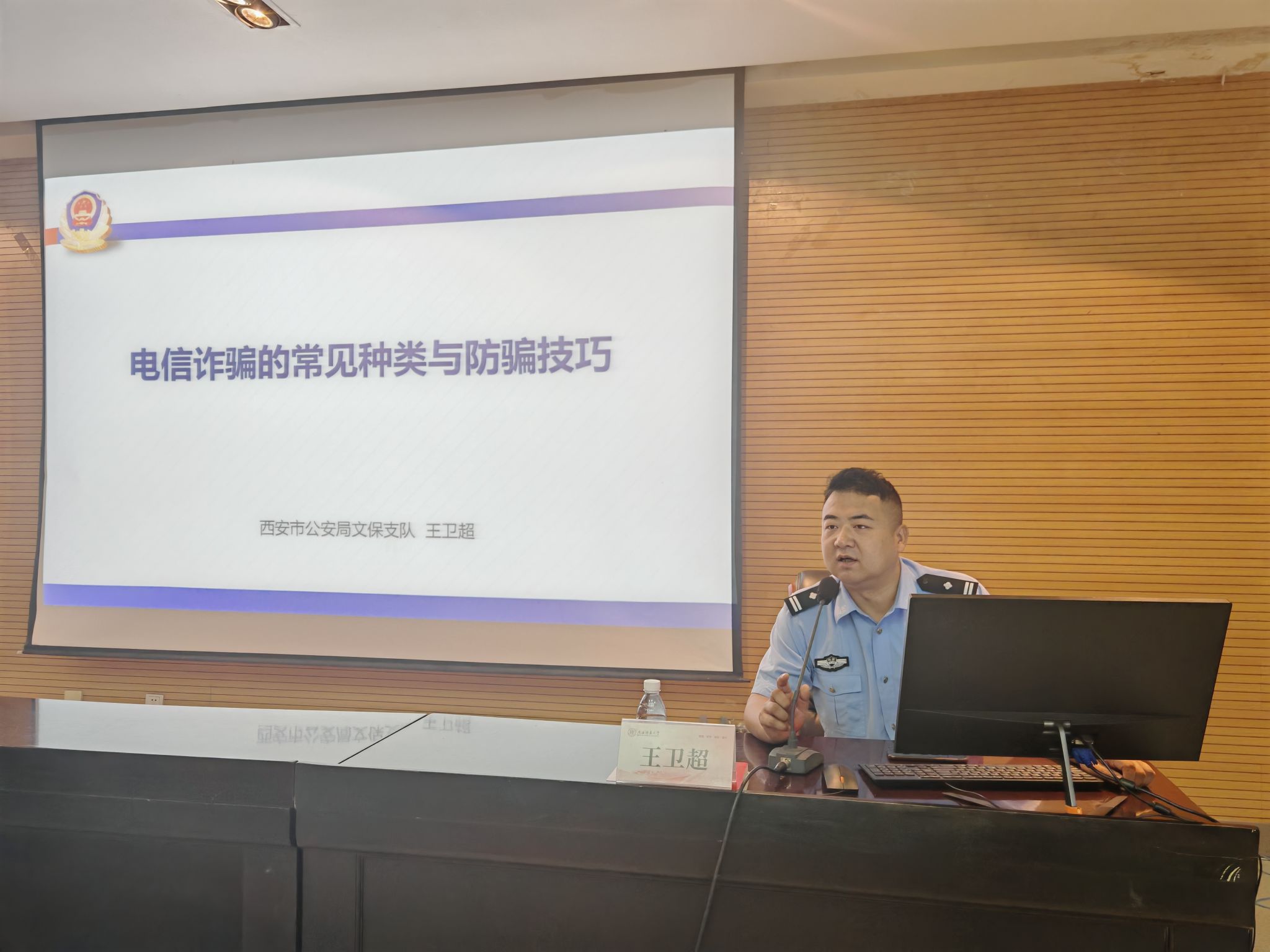 在雁塔校区崇鋈楼归仁堂成功举办了校园网络安全教育专题讲座。本次讲座特邀西安市公安局文保支队四大队副大队长王卫超同志主讲。讲座由taptap