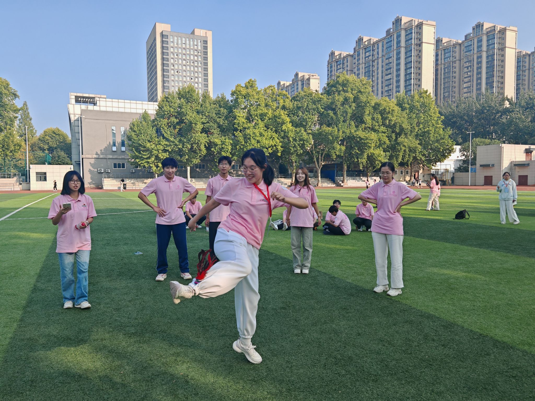 举办了一场别开生面的趣味运动会。本次运动会设置了乒乓球和羽毛球个人赛以及6个趣味项目,如"花毽传踢递勇气"、"绳舞飞扬展青春"、"可爱袋鼠跳一跳"等,既考验团队协作能力,又充满欢乐气氛。