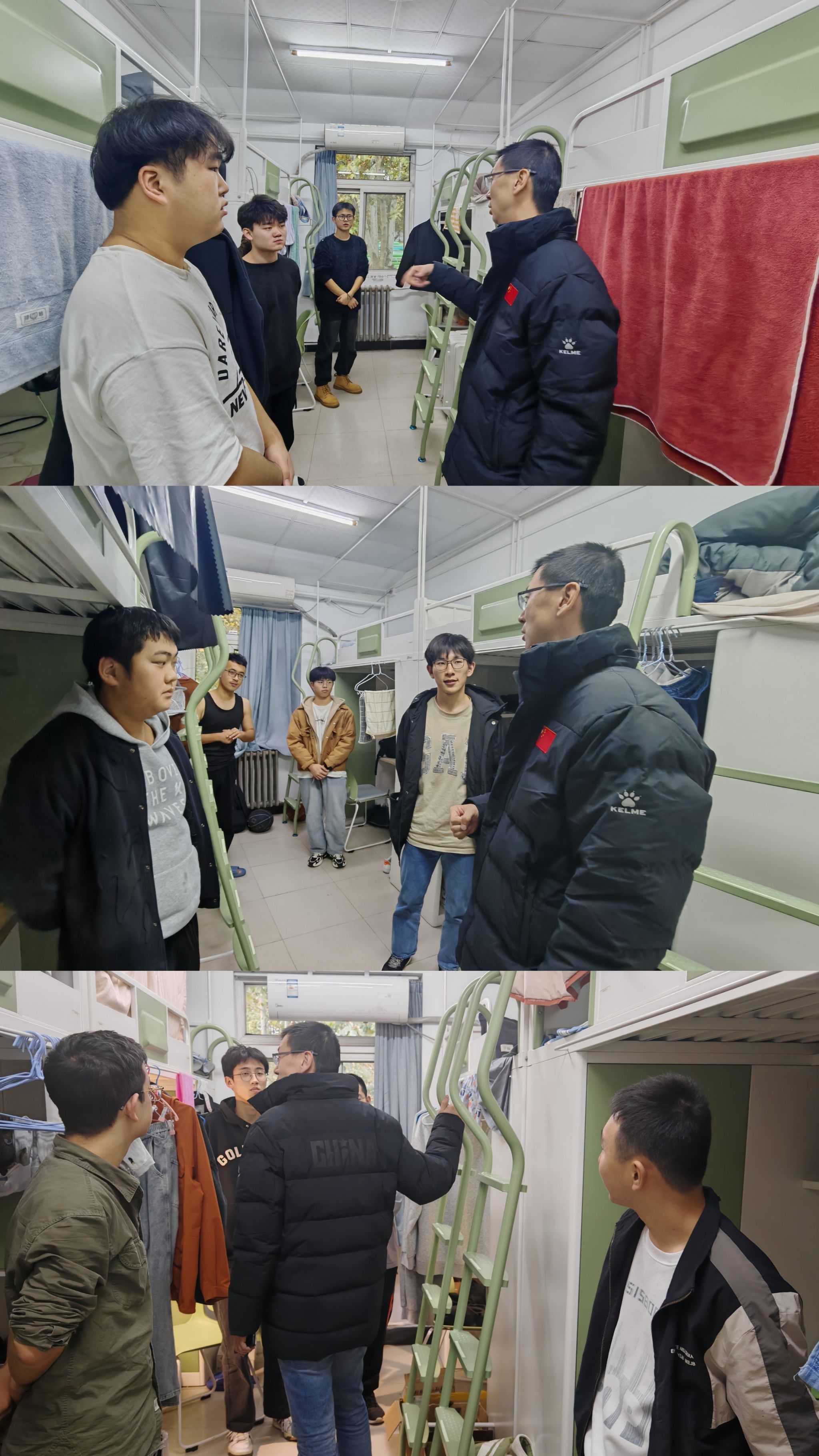 走访过程中,高冬与同学们亲切交谈,询问同学们的学习、生活和宿舍关系等情况,关心同学们的饮食习惯,鼓励同学们要融入和适应大学集体生活,跟身边人建立和谐融洽的人际关系。他强调,在学校里老师就是父母,同学们就是兄弟姐妹,要珍惜当下,和谐相处,维护民族团结。他还不忘叮嘱同学们注意身体健康,及时增添衣物,在生活和学习上有任何问题,可及时向辅导员和老师们寻求帮助,要合理规划时间,保持良好的学习生活习惯,注意宿舍用电安全、防范电信网络诈骗,保护好人身财物安全。