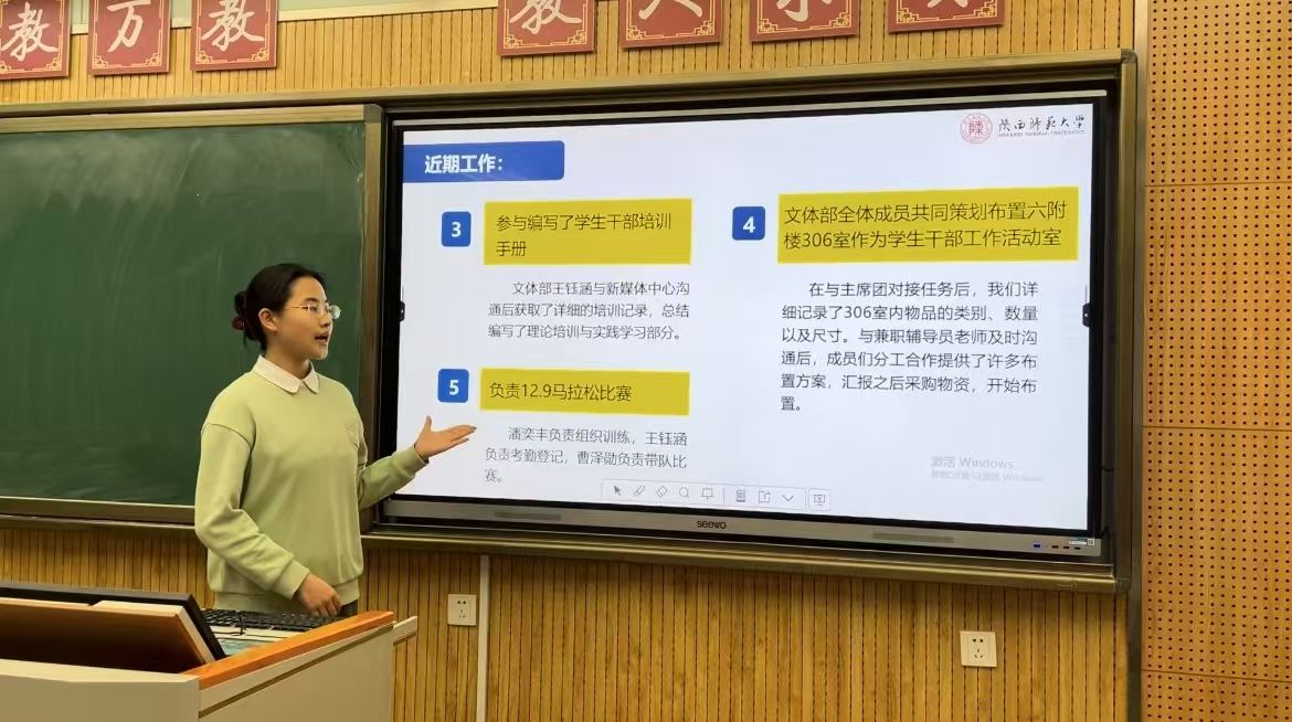 办公室和心理生活部负责人 马佳悦作部门工作汇报