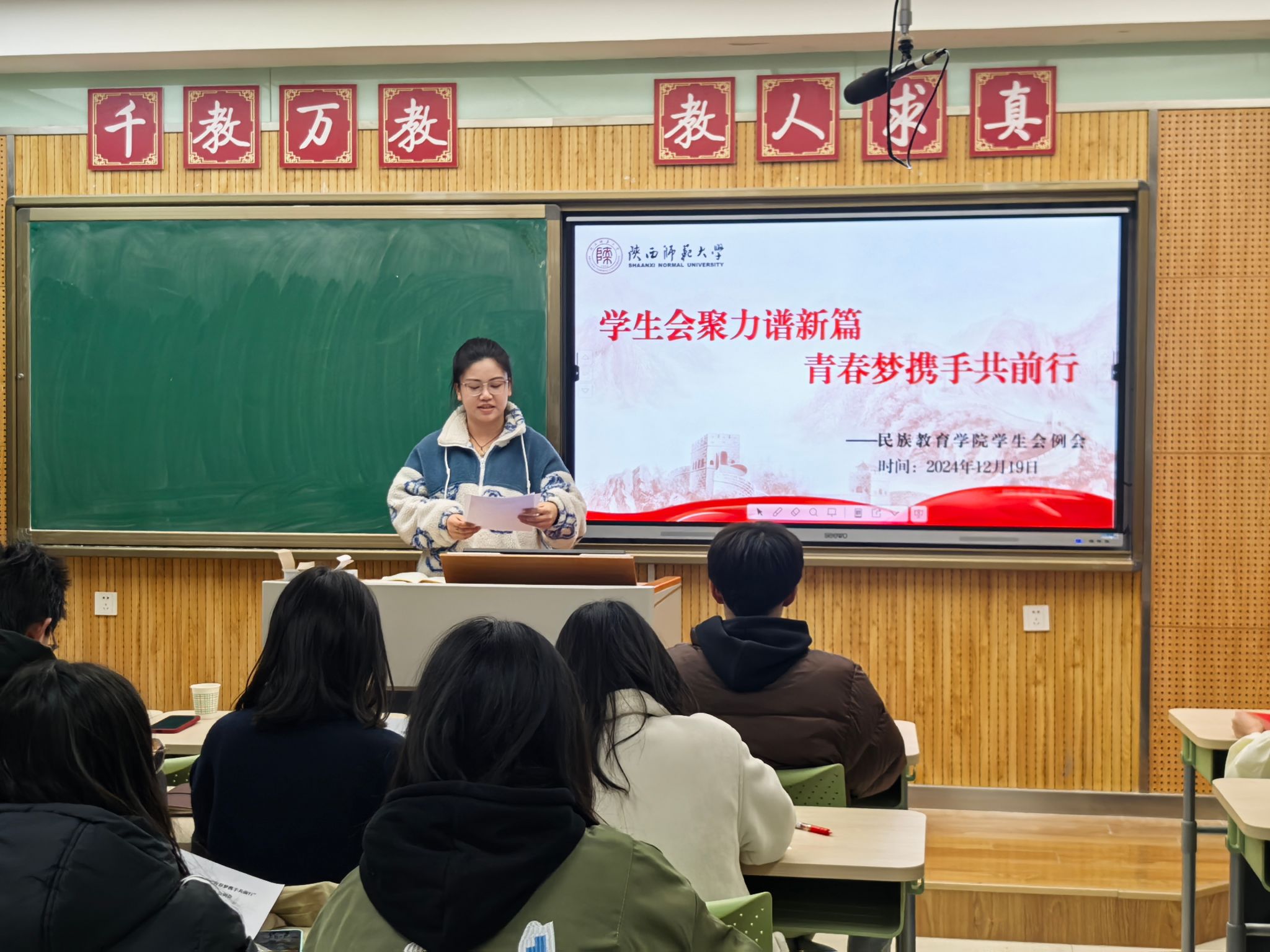 会议伊始,学生会主席团成员覃佳带领大家学习了习近平总书记关于青年工作的重要论述。她分别从习近平总书记对青年的回信期望、教育变革创新推动举措以及学联学生会工作指导意见三项内容展开解读分析,激励各族青年加强理论学习,将个人的前途和国家的命运结合起来,在实践中锤炼本领、提升素质,引领各族青年坚定不移感党恩、听党话、跟党走,立志做有理想、敢担当、能吃苦、肯奋斗的时代新人。