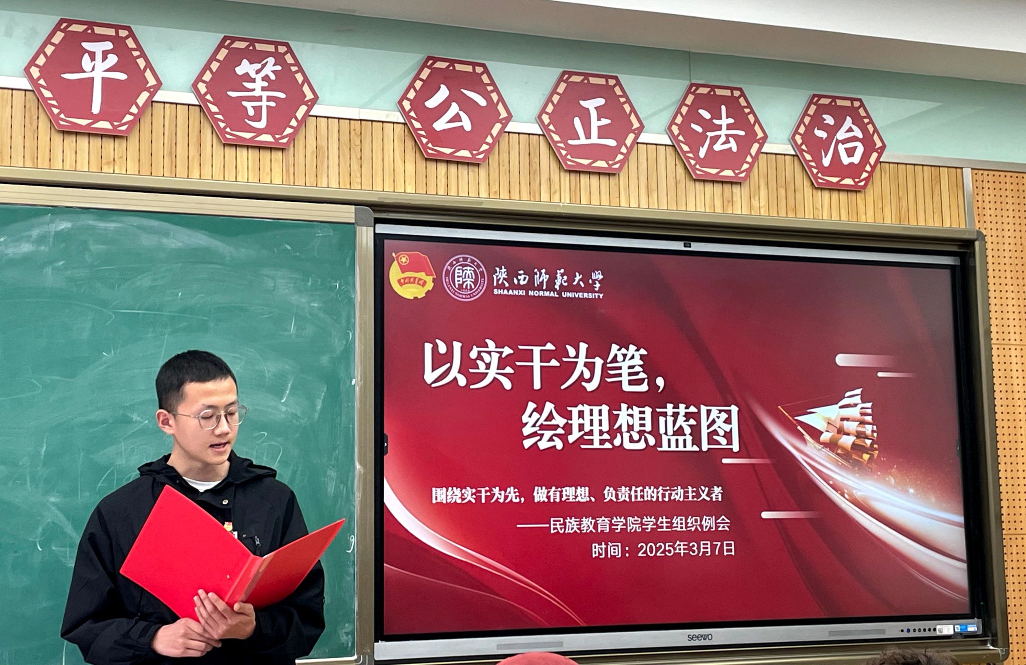 团委书记、专职辅导员热依木・努尔麦麦提,团委学生兼职副书记、兼职辅导员刘江珊及全体学生干部参加会议,会议由学生会学术创新部马阳杨主持。
