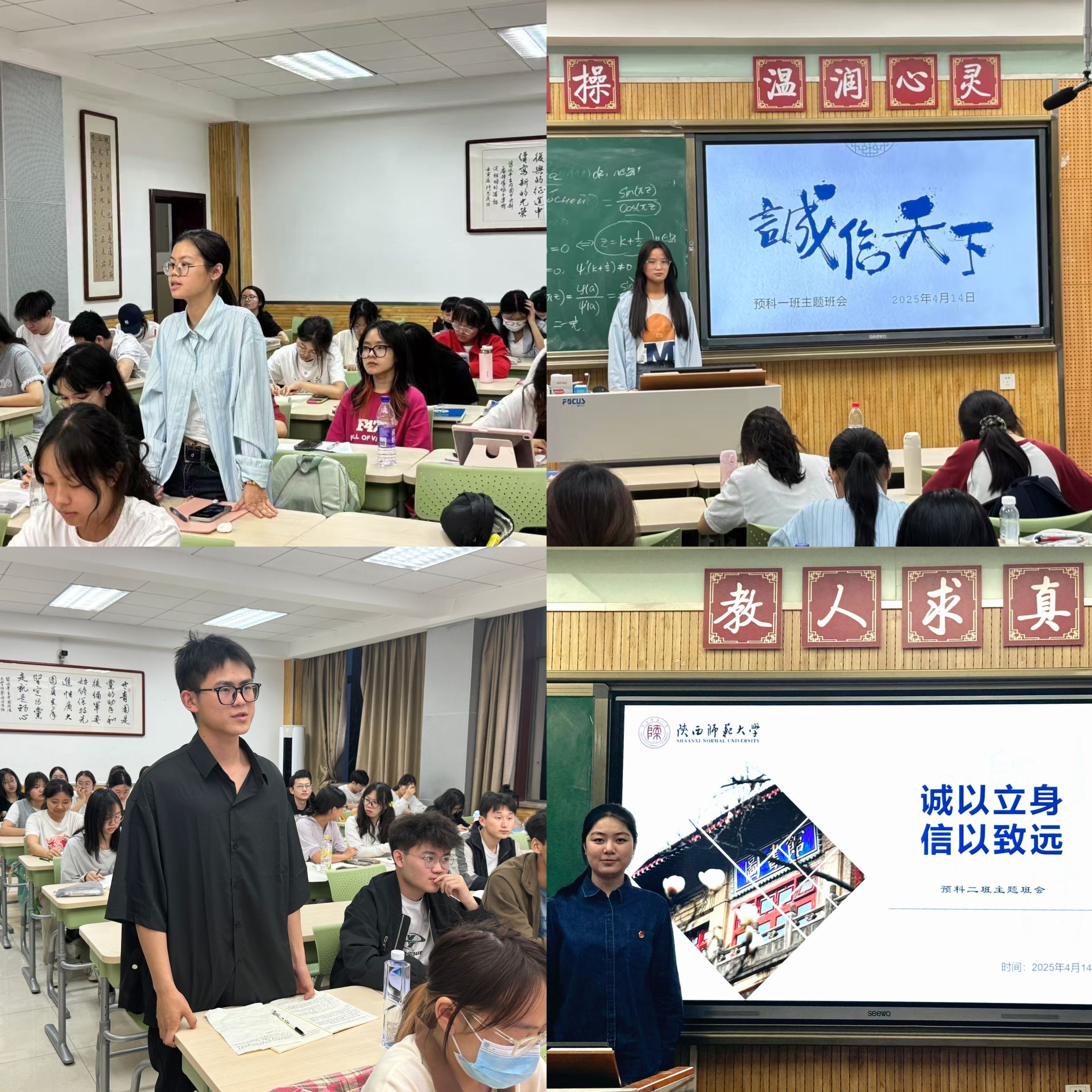 各班级围绕本届活动月主题积极组织线下班会。班会将诚信教育与校风传承、学风建设、文明校园创建有机结合,使“秉信立行”的理念融入班级建设、课堂学习、学术研究以及宿舍生活的各个环节,以点带面,带动更多学生以诚信为准则修养品德。