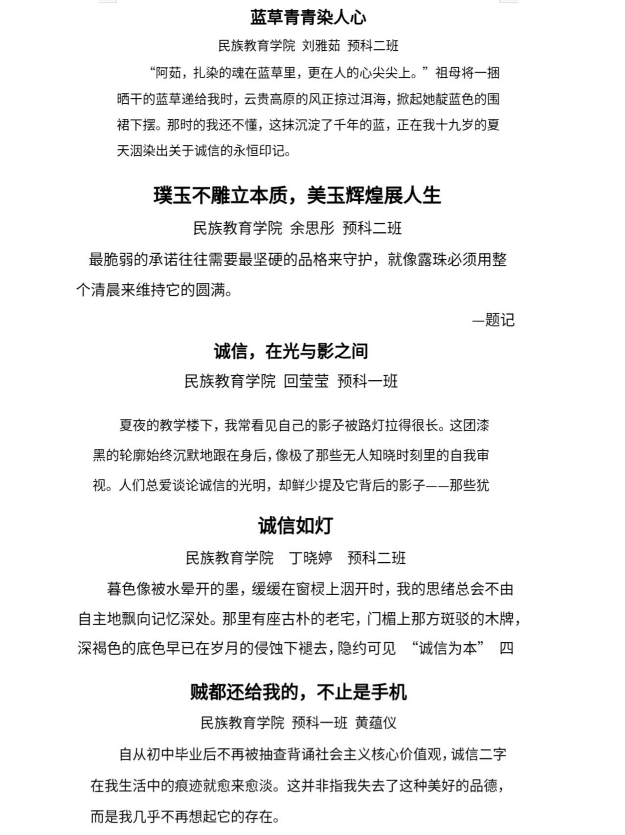 (二)主题征文:书写诚信篇章
