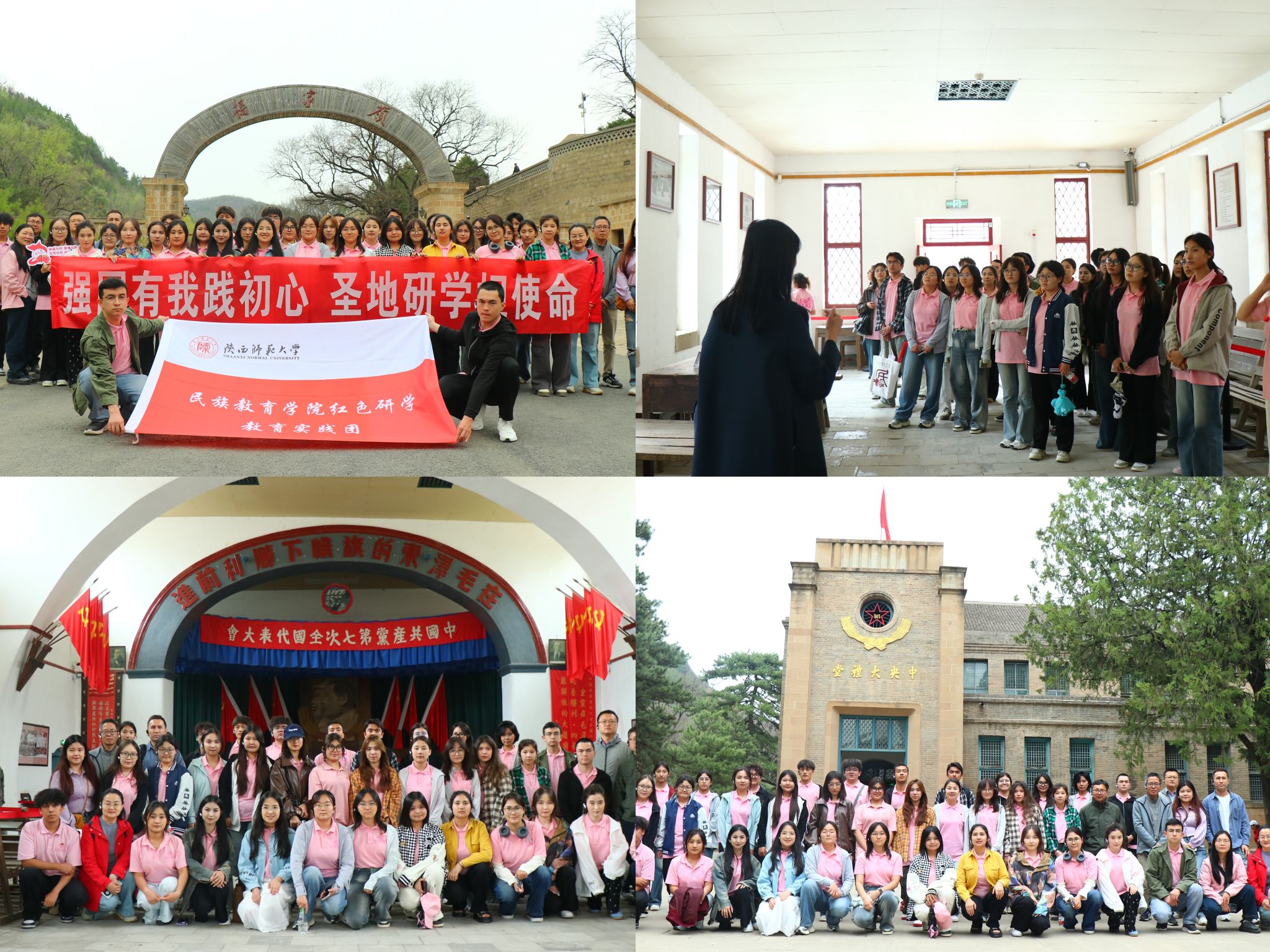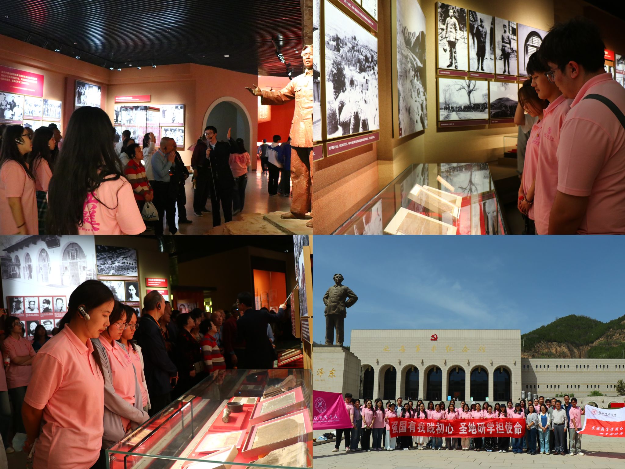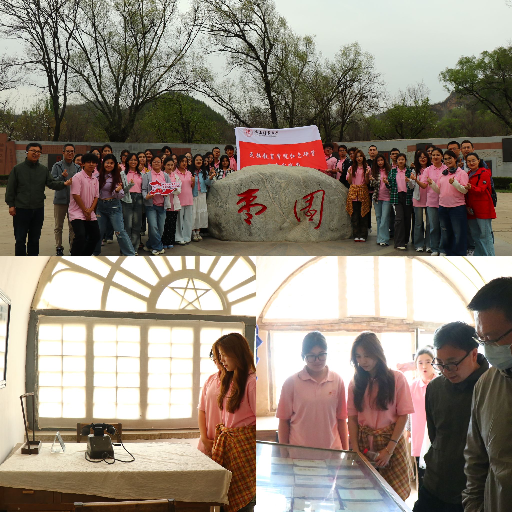走进延安革命纪念馆,丰富的文物、详实的史料、逼真的场景复原,全方位展现了延安时期中国共产党领导人民进行革命斗争的光辉历程。师生们认真聆听讲解,驻足凝视每一件展品,——从布满弹孔的军旗到边区群众支援前线的布鞋,从《论持久战》手稿到根据地生产的农具,大家深入了解延安作为中国革命圣地的重要意义,更加深刻地领会延安精神“自力更生、艰苦奋斗”的丰富内涵与时代价值,从历史中汲取继续前进的智慧和力量。