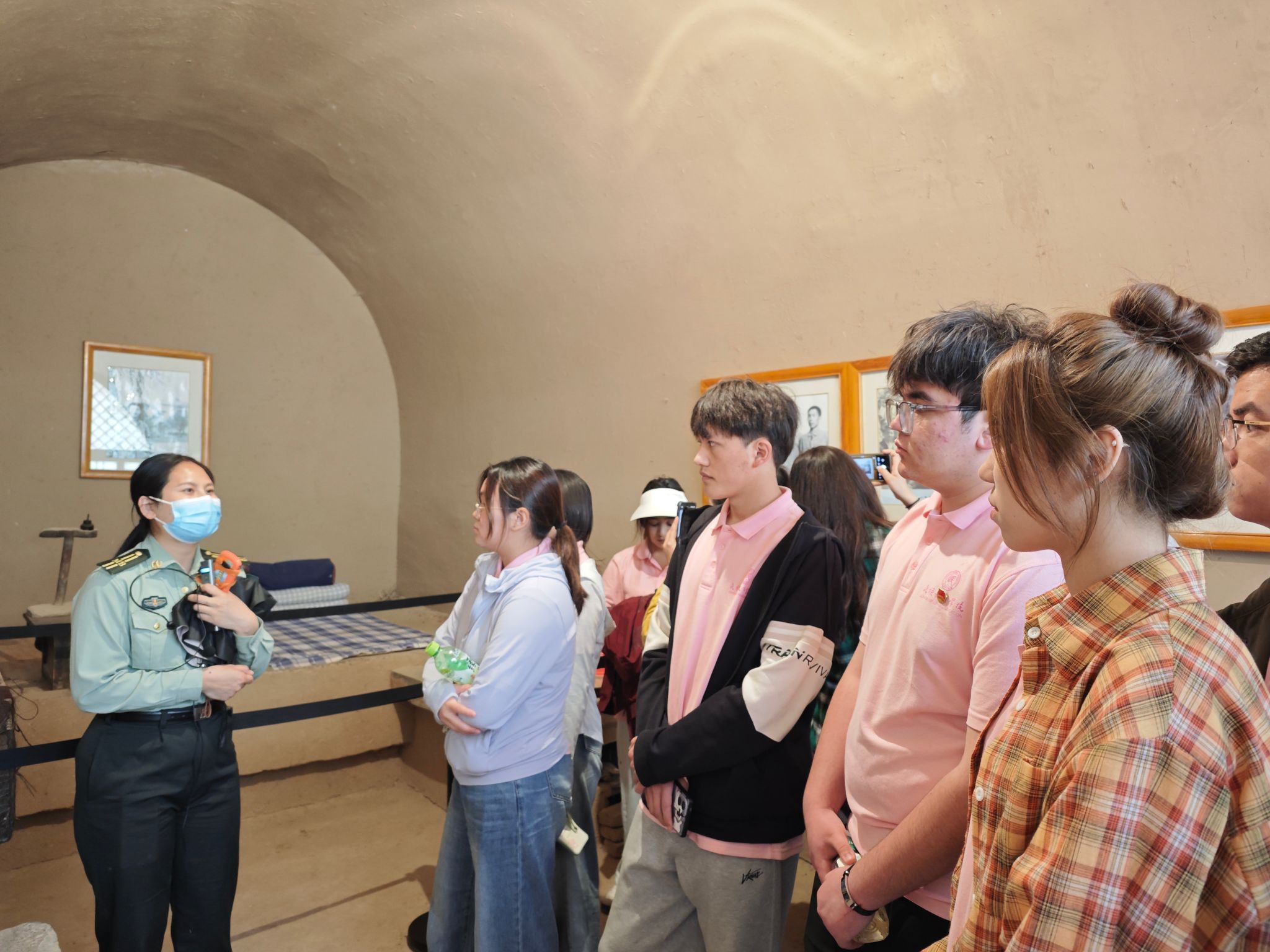 参观结束后,师生们步行前往王家坪革命旧址,这里曾是中央军委和八路军总部所在地。在军委礼堂旧址,斑驳的木质座椅与墙上的抗战地图,重现了当年军事会议的紧张氛围;彭德怀、朱德等将领的旧居内,简朴的陈设与作战沙盘,见证了革命先辈指挥千军万马的峥嵘岁月。讲解员重点讲述“延安双拥运动”的起源,展现了“军爱民、民拥军”的优良传统,让师生们深刻认识到“团结就是力量”的革命真理。