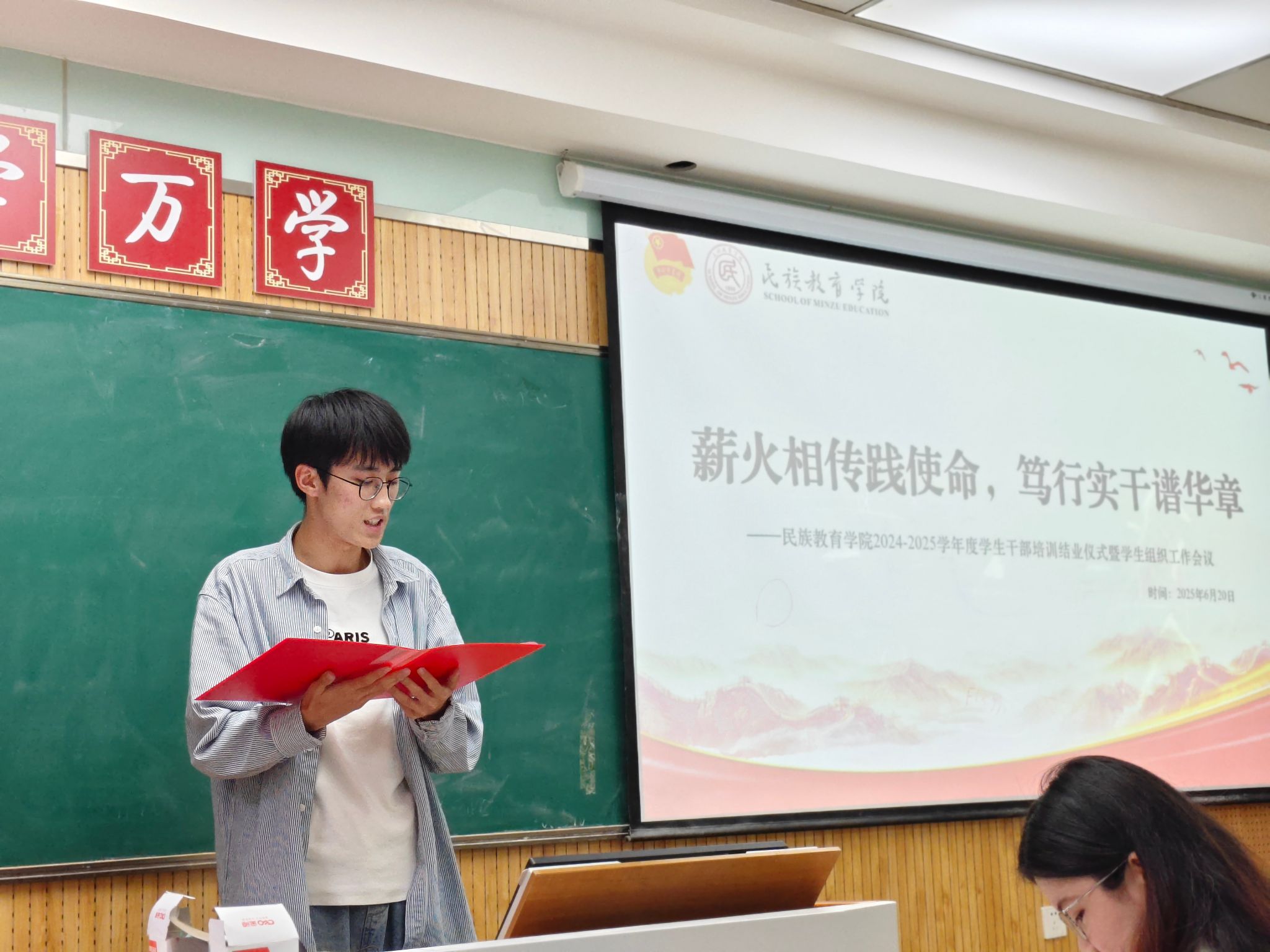 党总支副书记高冬牵头的培训领导小组对于培训体系、课程方案、内容设置进行反复打磨,精心呈现具有时代特色、符合民教学子的学生干部培训。