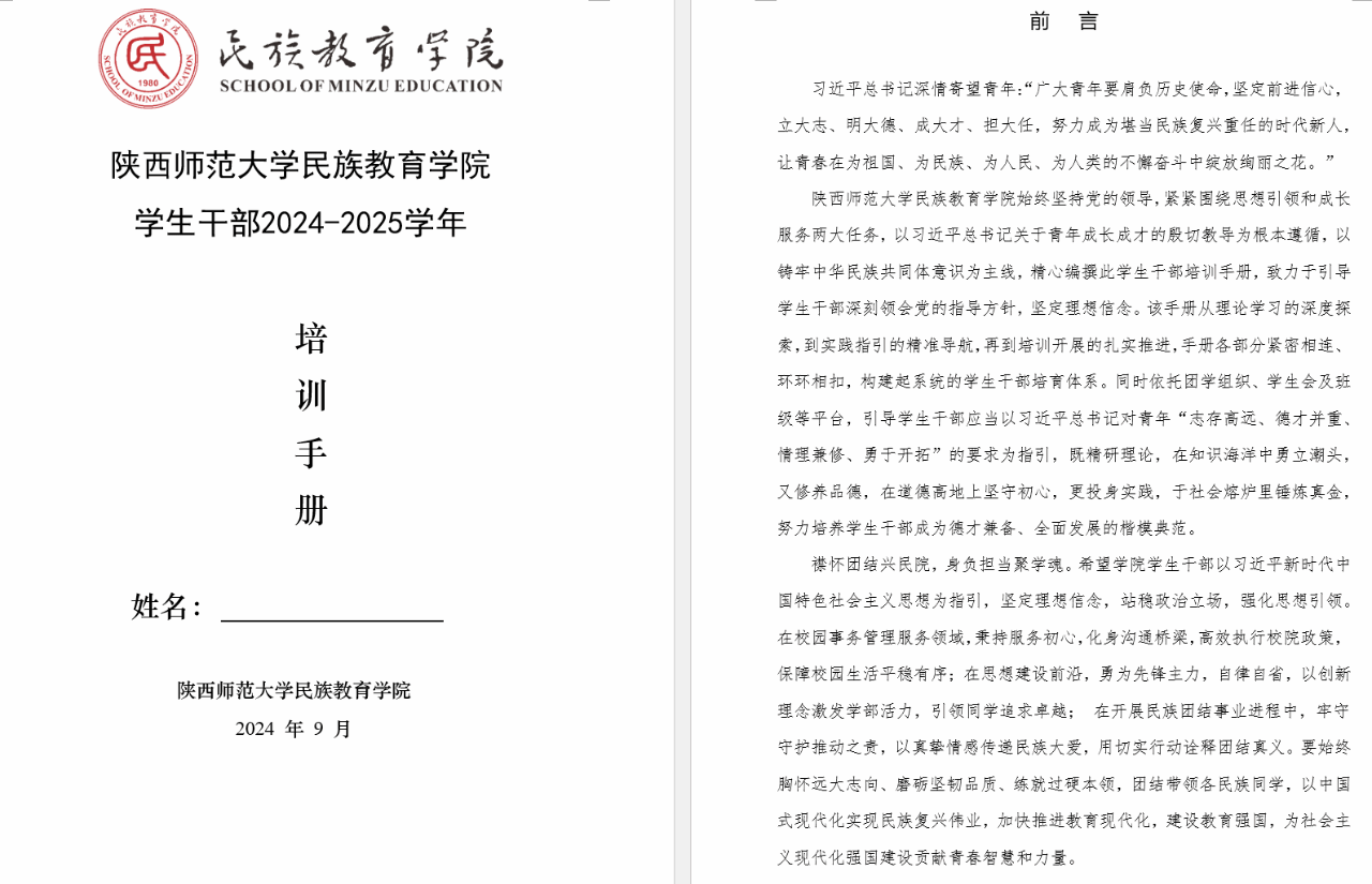 预科阶段的学生干部培训如一场知识与实践的盛宴。老师们的悉心培养,学长学姐的倾囊相授、培训手册的撰写打磨,既锤炼了我的组织才干,也让我深刻领悟责任之重,为我未来的工作筑牢了坚实根基。未来,我会以更高的标准要求自己,践行学生干部的责任与担当,努力为同学们服务,为校园建设贡献自己的一份力量 ,在服务与奉献中实现自我价值的升华。